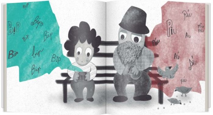 Un bunic și un nepot stau pe o bancă, în parc. Singurele sunete care se aud sunt ciripitul păsărilor și sunetele consolei nepotului, prilej pentru bunic să rememoreze jocurile copilăriei sale.