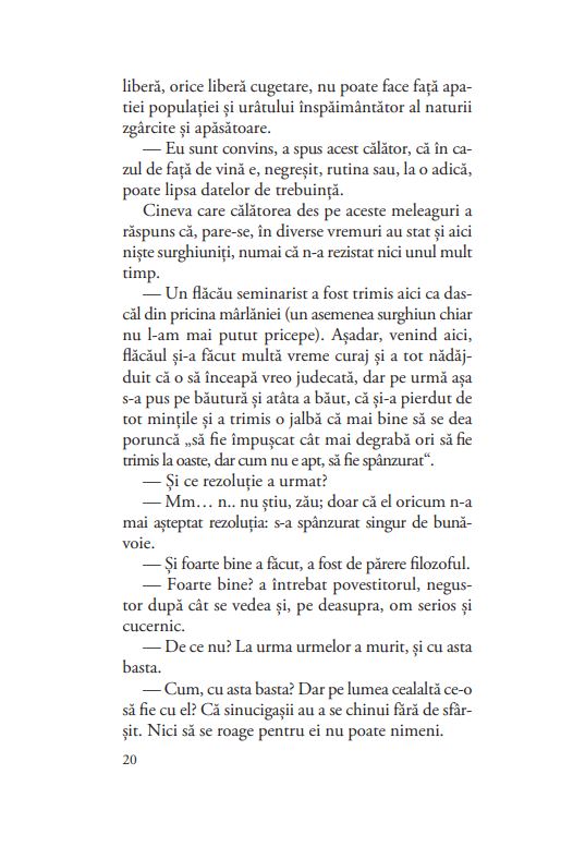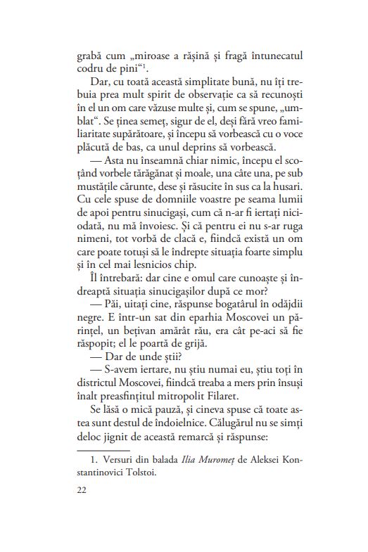Un roman picaresc de mici dimensiuni, dar plin de forță, uimitor, deconcertant, de o bogăție inepuizabilă a poveștii, de la un clasic al literaturii ruse mai puțin cunoscut, nedreptățit, poate, de contemporaneitatea cu marile nume ale secolului al XIX-lea.