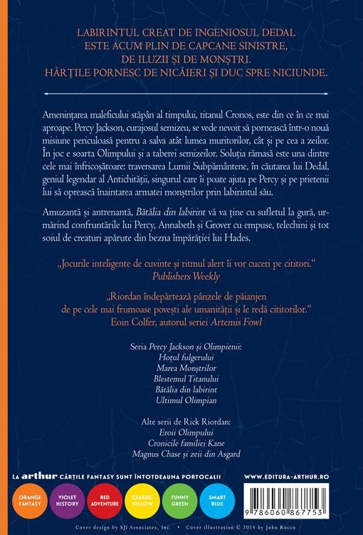 Amuzantă și antrenantă, Bătălia din labirint vă va ține cu sufletul la gură, urmărind confruntările lui Percy, Annabeth și Grover cu empuse, telechini și tot soiul de creaturi apărute din bezna împărăţiei lui Hades.