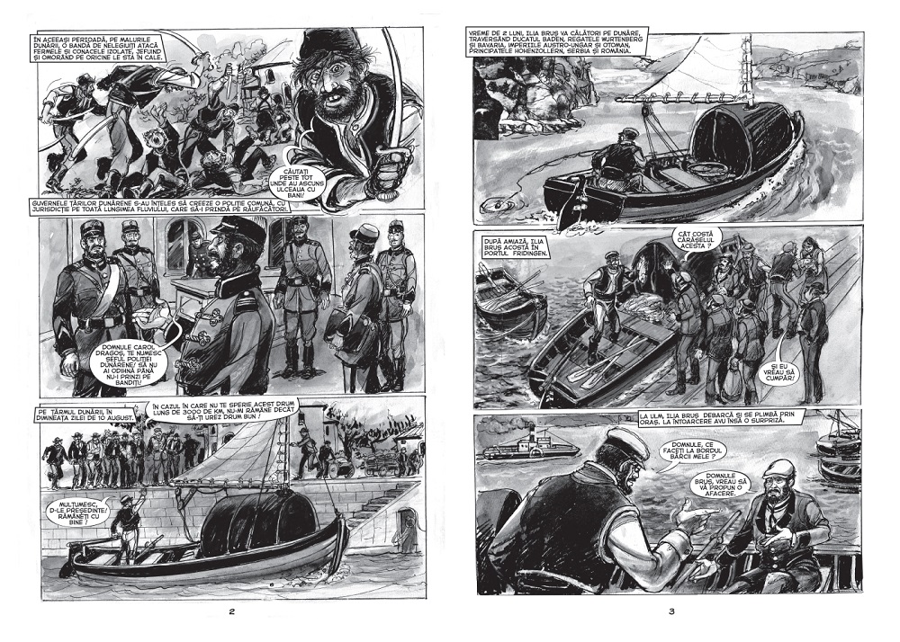 Să publici un album de bandă desenată la 95 de ani e cu siguranță o performanță unică în lume, dar Pilotul de pe Dunăre nu e doar o curiozitate editorială – e o bandă desenată antrenantă, plină de acțiune, care se citește cu sufletul la gură. E și meritul lui Dodo Niță, care rezumă firesc un roman de aproape 350 de pagini în 37 de planșe BD, adăugându-și astfel și titlul de scenarist BD unui CV deja plin (pe lângă mereu reînnoita Istorie a Benzii Desenate Românești, a publicat volume de povestiri, articole, interviuri și monografii despre Livia Rusz, Sandu Florea, Nicu Russu, Burschi și… Puiu Manu).