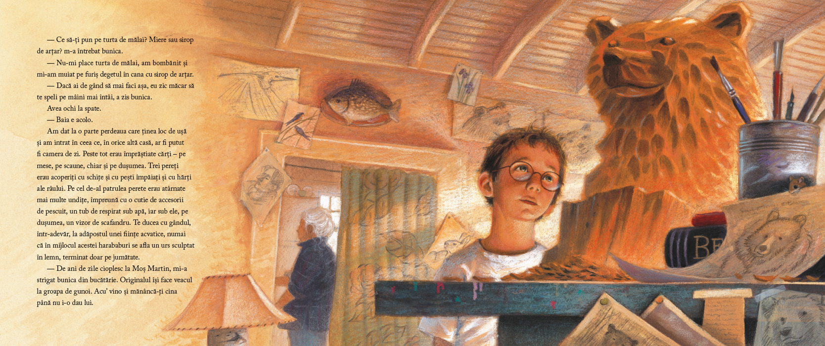 Povestea lui Jim LaMarche nu este numai despre o vară extraordinară petrecută de un copil pe malul unui râu, împreună cu bunica sa care pictează, sculptează și pescuiește. Nici joaca subacvatică printre vidre și pești, nici salvarea unui pui de căprioară, nici săriturile spectaculoase în apă nu sunt cele mai importante lucruri care se petrec în carte.