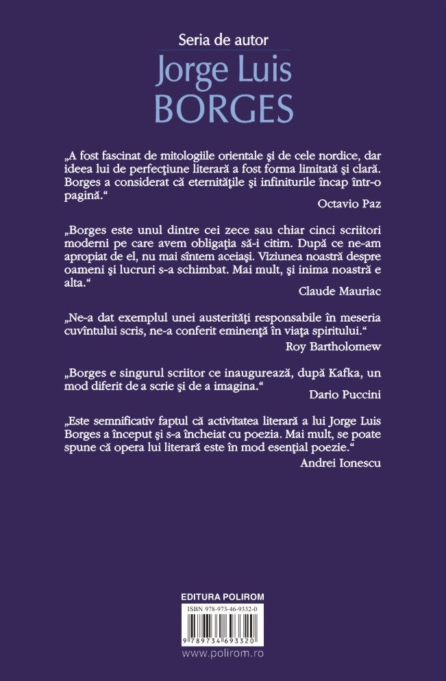 „Este semnificativ faptul că activitatea literară a lui Jorge Luis Borges a început şi s‑a încheiat cu poezia. Mai mult, se poate spune că opera lui literară este în mod esenţial poezie.” (Andrei Ionescu)