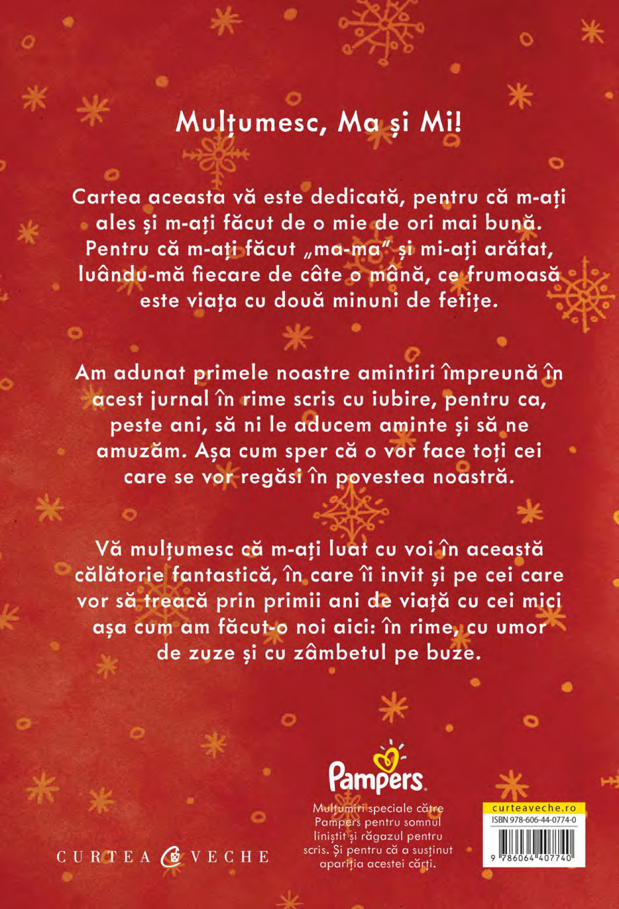 Vă mulțumesc că m-ați luat cu voi în această călătorie minunată. În care îi invităm și pe cei care vor să treacă prin primii ani de viață cu cei mici așa cum am făcut-o noi aici: în rime, cu umor de zuze și cu zâmbetul pe buze. (Irina Becher)