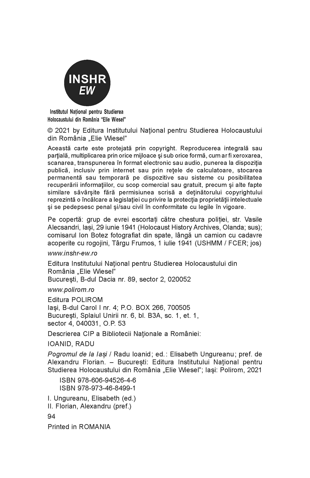 Coeditare cu Editura Institutului Naţional pentru Studierea Holocaustului din România „Elie Wiesel”