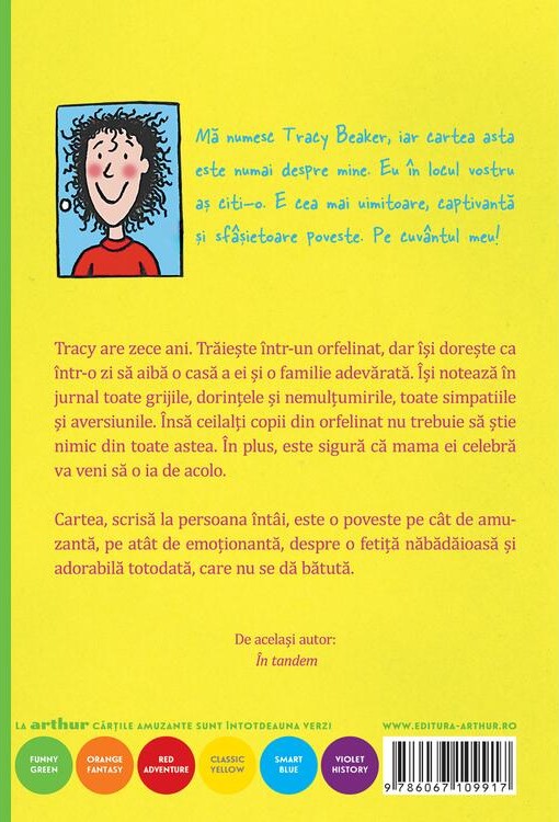 Mă numesc Tracy Beaker, iar cartea asta este numai despre mine. Eu în locul vostru aş citi-o. E cea mai uimitoare, captivantă şi sfâşietoare poveste. Pe cuvântul meu!