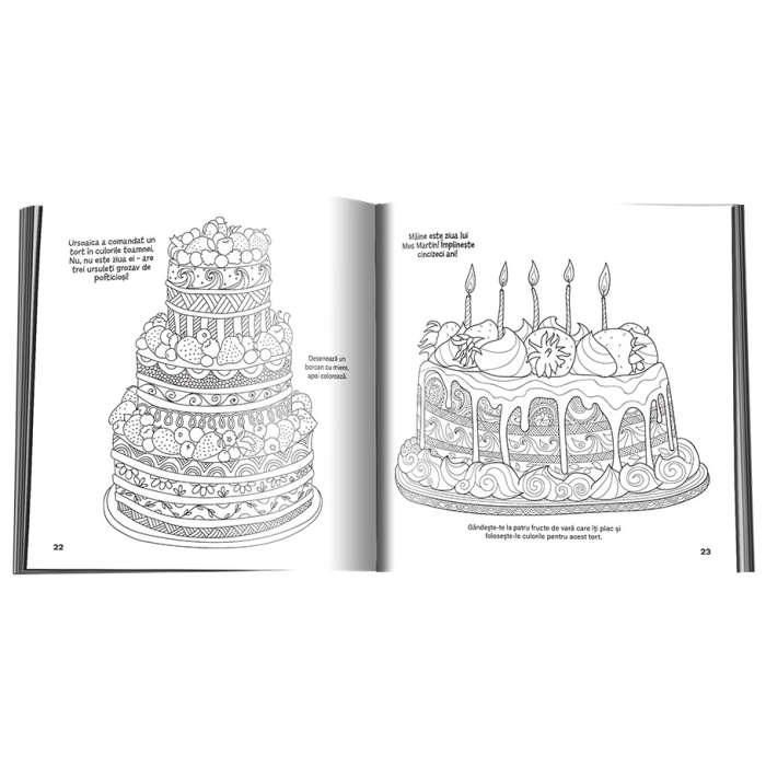 Iepurașii din pădure și-au deschis cofetărie! Colorează torturile și delicioasele prăjituri ținând seama de indicațiile oferite și ajută-i să termine la timp comenzile. Fii atent la pisicile șirete care vor să fure rețetele! Oare le vor prinde?