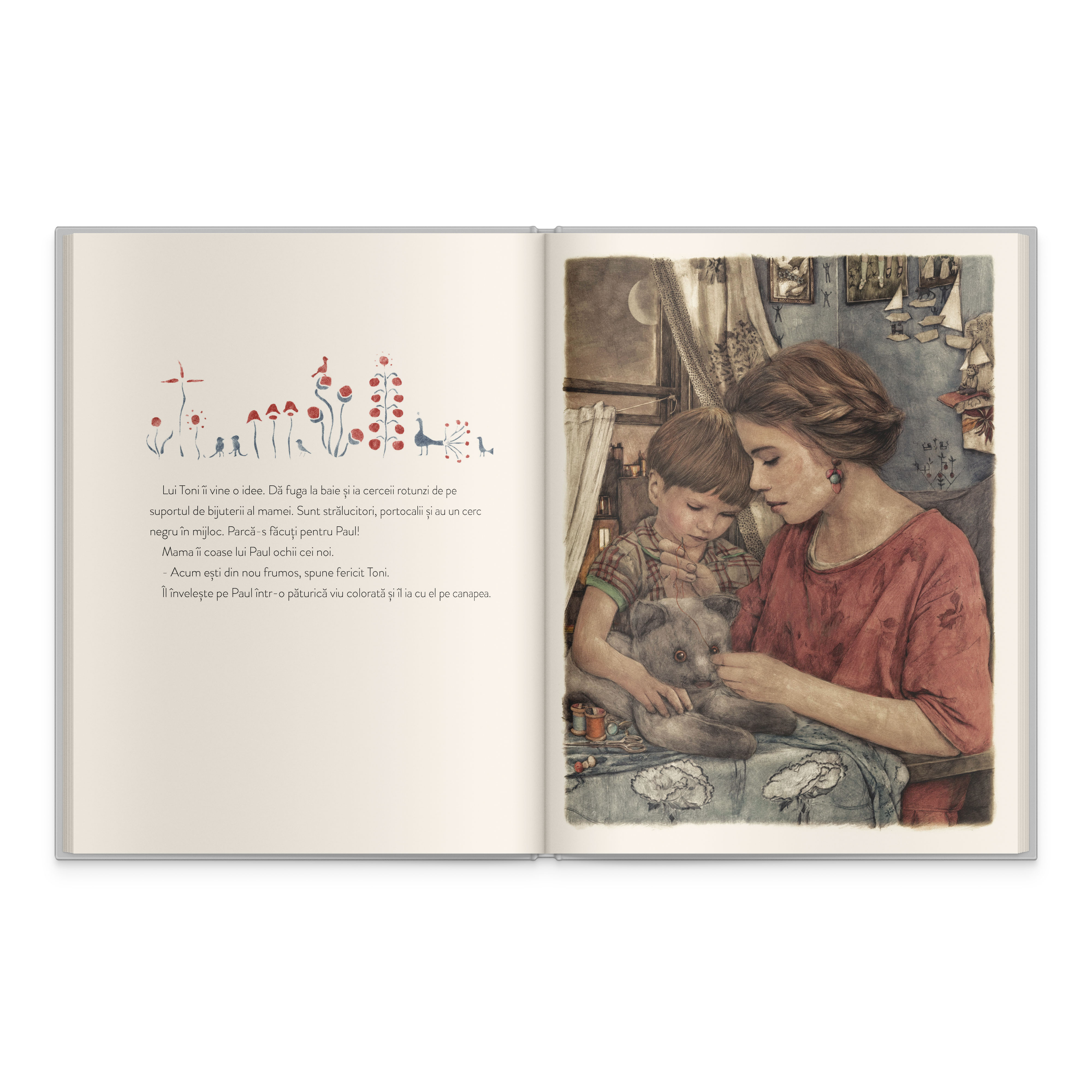 Cartea aceasta este frumoasă prin subiectele abordate, însă ilustrațiile realizate în acuarelă și guașă ale excepționalei Sonja Danowski, o fac magnifică. Detaliile abundente ale fiecărei picturi și stilul realist al reprezentării vizuale transpun cititorul în atmosfera fiecărui moment al narațiunii. Ilustratoarea bucură deopotrivă inimi și ochi de copii și adulți, iar blândețea creațiilor ei ne îndeamnă să luăm o pauză de la totul nostru zilnic și să evaluăm însuși sensul existenței noastre.