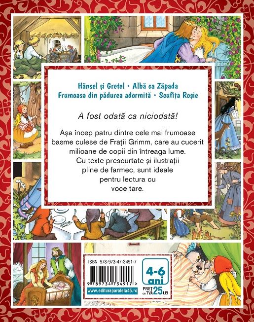 Hansel si Gretel, Alba ca Zapada, Scufita Rosie, Frumoasa din padurea adormita