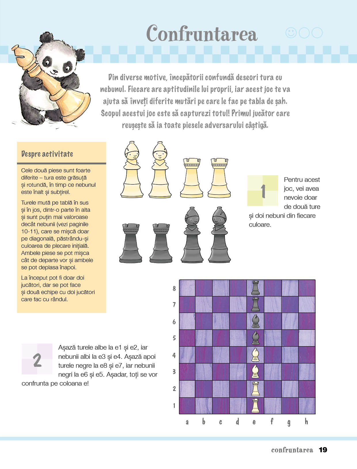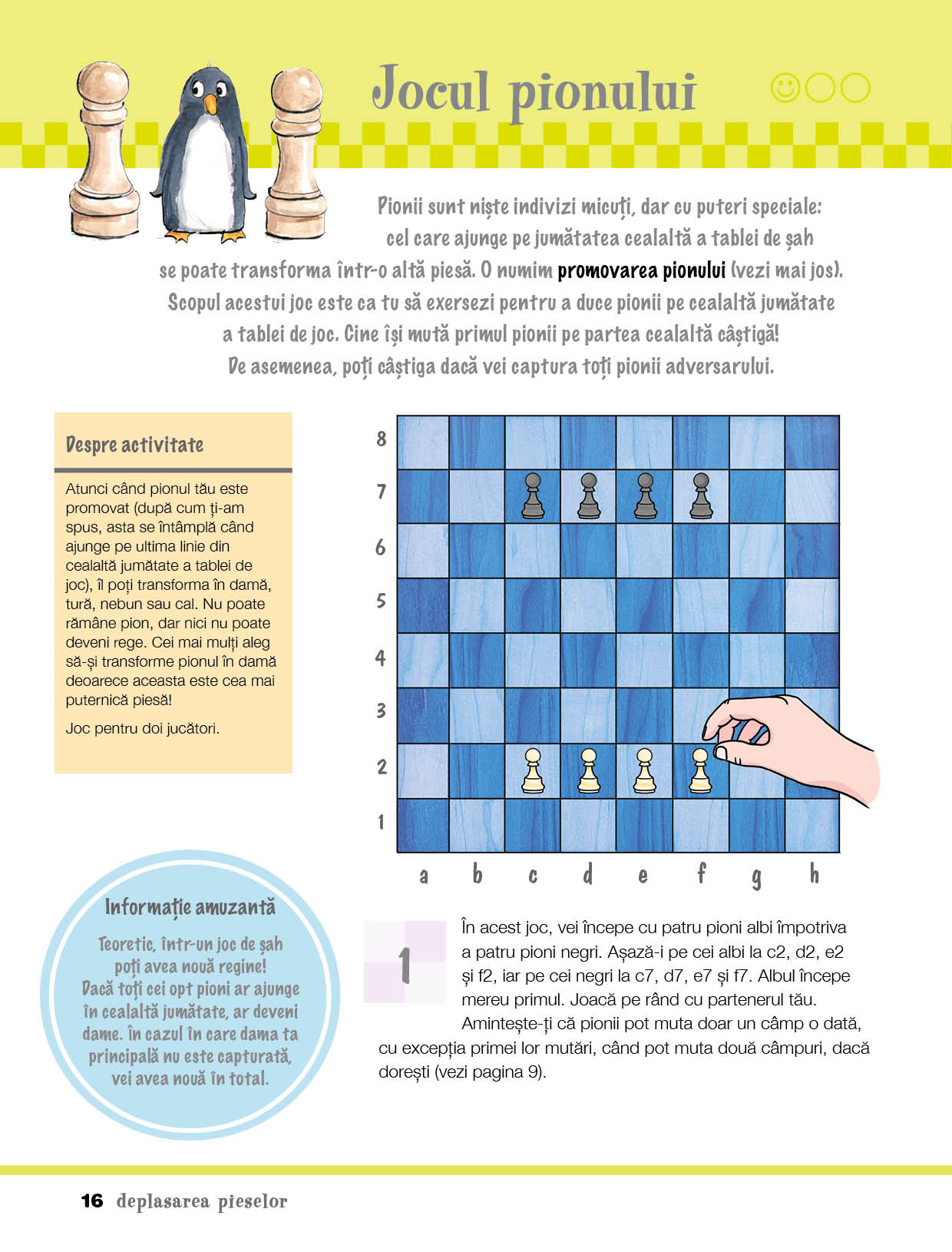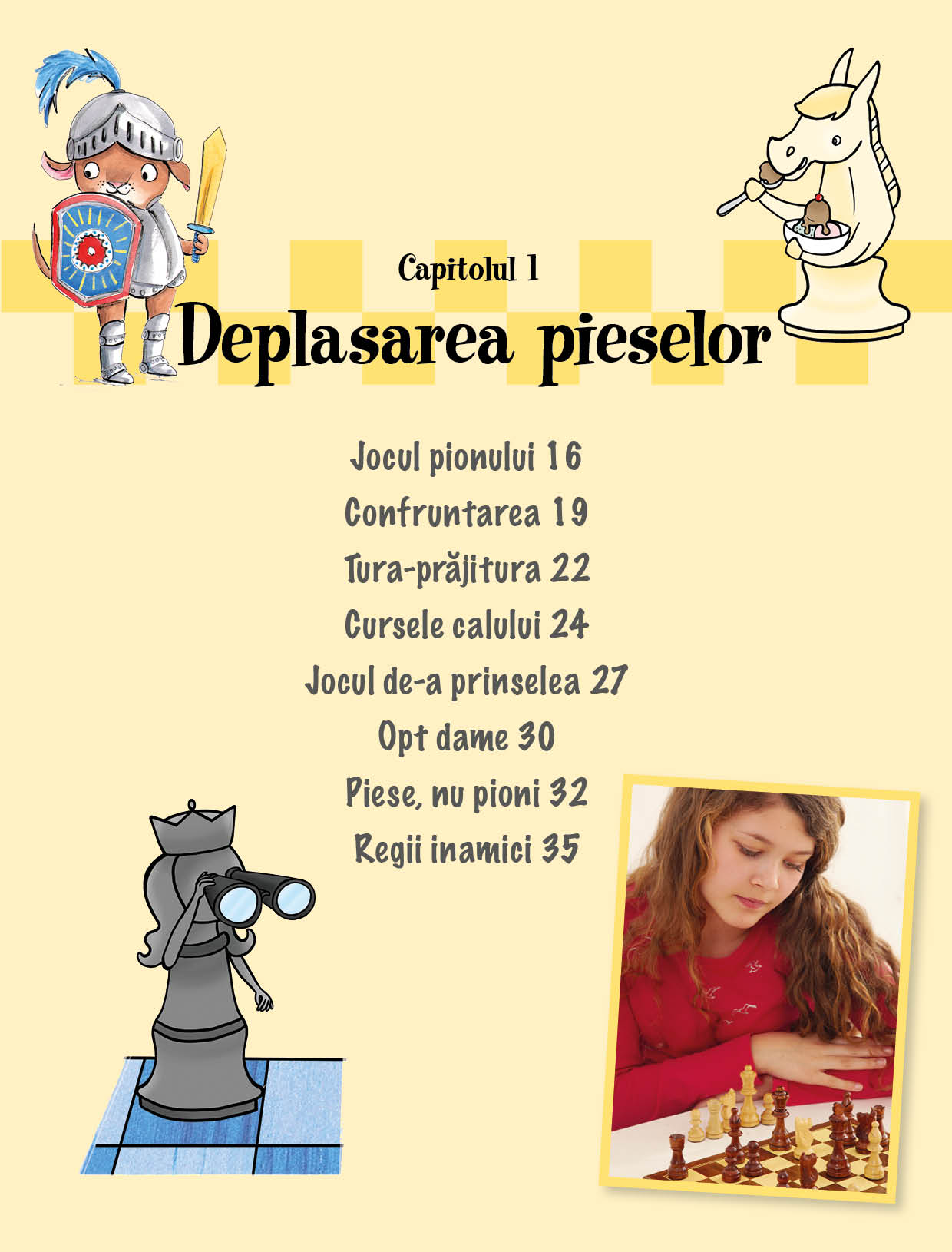 Pagină după pagină, vei învăța o mulțime de lucruri interesante, iar la final vei reuși să-i învingi foarte repede pe tatăl sau pe mama ta, pe bunicul sau un prieten! Uneori vei câștiga, alteori vei pierde... Însă, nu uita să fii mereu un bun adversar și să bați palma sau să strângi mâna partenerului la finalul fiecărui joc.