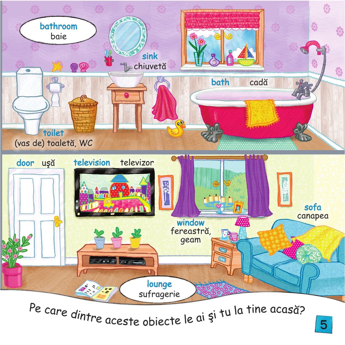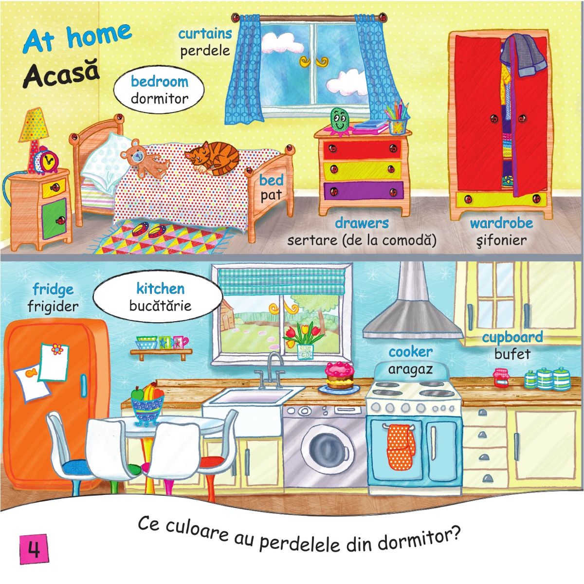 Datorită numeroaselor imagini aflate pe fiecare pagină, copiii vor reține mai ușor termenii din engleză, organizați pe diverse teme din viața de zi ci zi și însoțiți de traducerea lor în română.