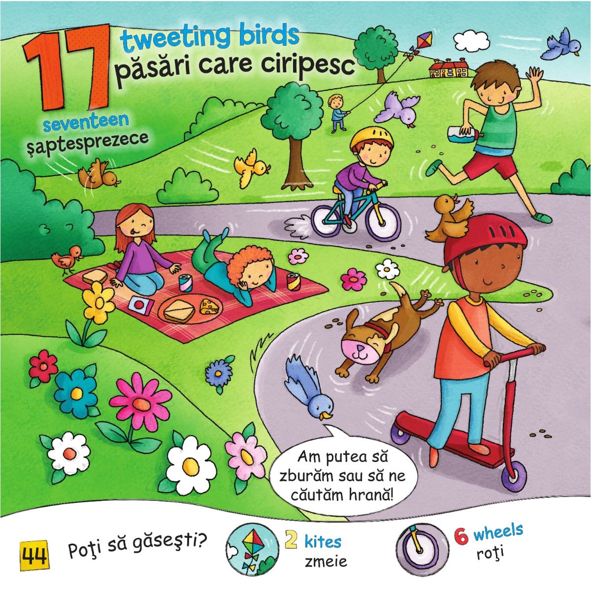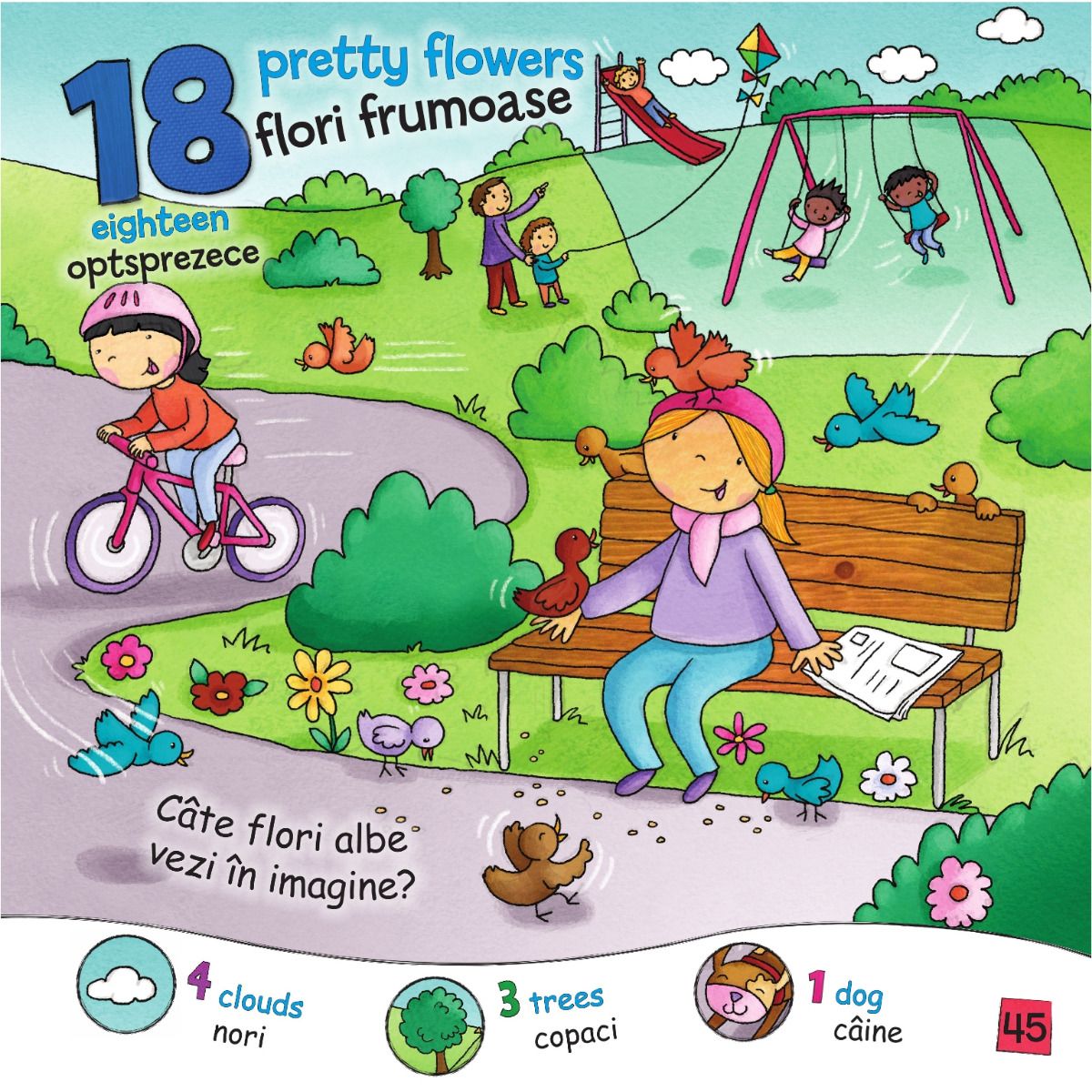 Cei mici se vor bucura să descopere în această carte ilustrații viu colorate și atractive, care îi vor ajuta să învețe mai ușor primele lor cuvinte și numere în limba engleză.