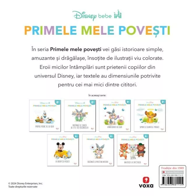 În seria Primele mele povești vei găsi istorioare simple, amuzante și drăgălașe, însoțite de ilustrații viu colorate. Eroii micilor întâmplări sunt prietenii copiilor din universul Disney, iar textele au dimensiunile potrivite pentru cei mai mici dintre cititori.