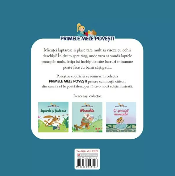 Micuței lăptărese îi place tare mult să viseze cu ochii deschiși! În drum spre târg, unde vrea să vândă laptele proaspăt muls, fetița își închipuie câte lucruri minunate poate face cu banii câștigați...