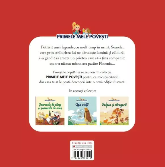 Potrivit unei legende, cu mult timp în urmă, Soarele, care prin strălucirea lui ne dăruiește lumină și căldură, s-a gândit să creeze un prieten care să-i țină companie: așa s-a născut minunata pasăre Phoenix...