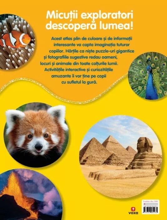Acest atlas plin de culoare și de informații interesante va capta imaginația tuturor copiilor. Hărțile ca niște puzzle-uri gigantice și fotografiile sugestive redau oameni, locuri și animale din toate colțurile lumii. Activitățile interactive și curiozitățile amuzante îi vor ține pe copii cu sufletul la gură.
