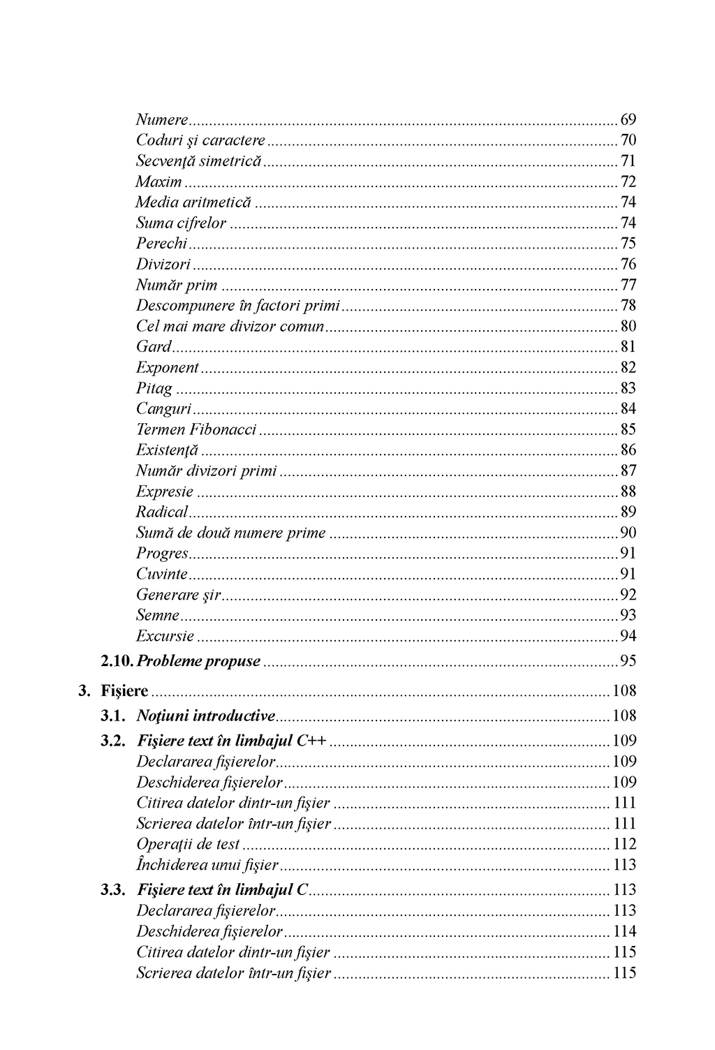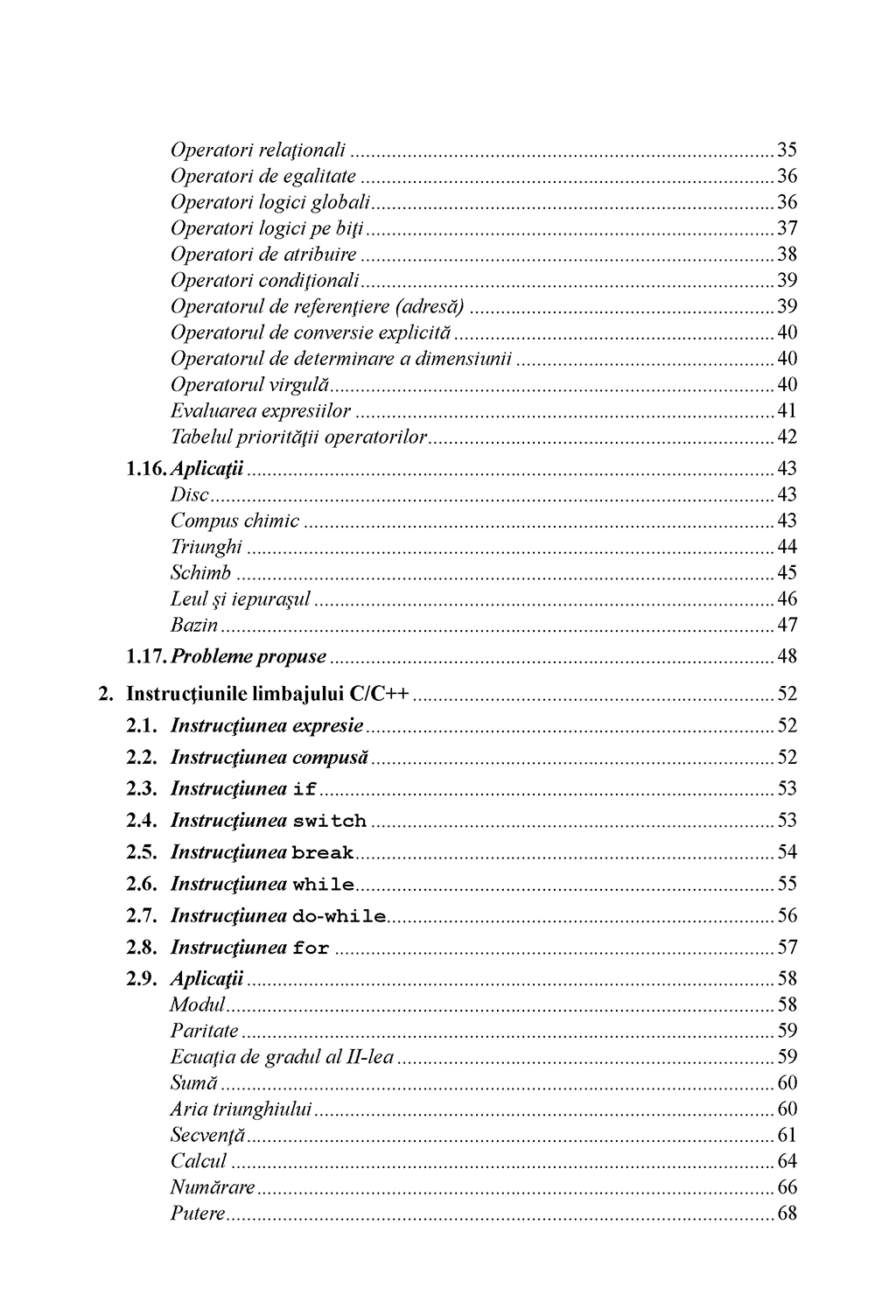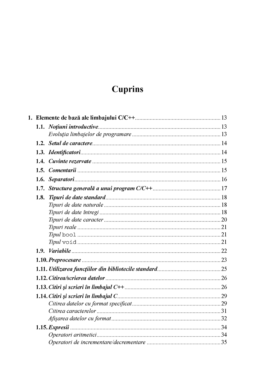 Structura cărții include atât materia prevăzută în programele școlare actuale de la clasele de profil, cât și teme care se studiază în Centrele de Excelență, pentru o pregătire de performanță. Conținutul teoretic este susținut prin exemple aplicative și prin numeroase rezolvări de probleme, iar fiecare temă este însoțită de un set consistent de probleme reprezentative, propuse spre rezolvare. Limbajul de programare C a devenit un standard: noile limbaje (de programare sau de scripting) care se impun pe piața dezvoltatorilor de software au ca punct de plecare sintaxa C/C++ (Java, Javascript, ActionScript, PHP etc.).