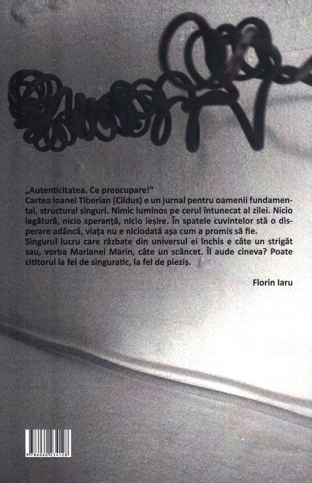 Cartea Ioanei Tiberian (Cildus) e un jurnal pentru oamenii fundamental, structural singuri. Nimic luminos pe cerul întunecat al zilei. Nicio legătură, nicio speranță, nicio ieșire. În spatele cuvintelor stă o disperare adâncă, viața nu e niciodată așa cum a promis să fie.