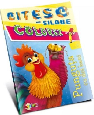 Cu ajutorul acestei carticele, cei mici vor invata sa citeasca pe silabe povestea Punguta cu doi bani iar apoi vor putea colora personajele.