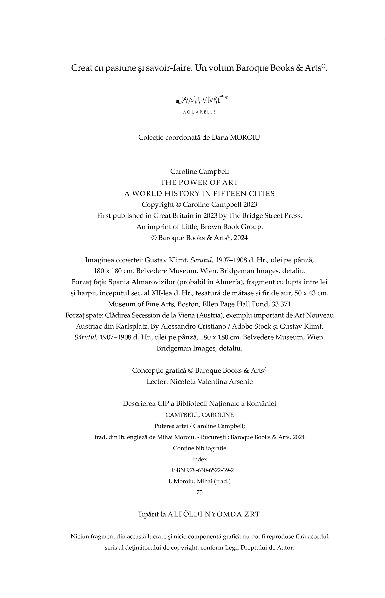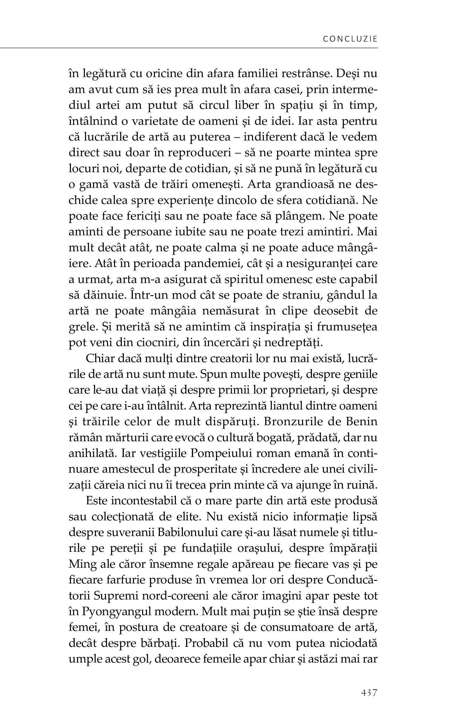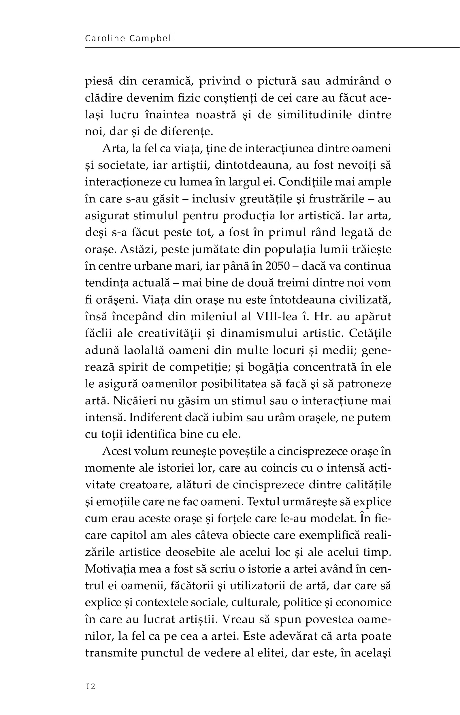 Istoria artei într-o nouă abordare: 15 cetăți eterne, momentele lor de strălucire artistică și povestea geniilor care le-au creat, surprinse în contextele lor sociale, culturale, politice și economice, având în centru oamenii - făcătorii, admiratorii și consumatorii de artă.
