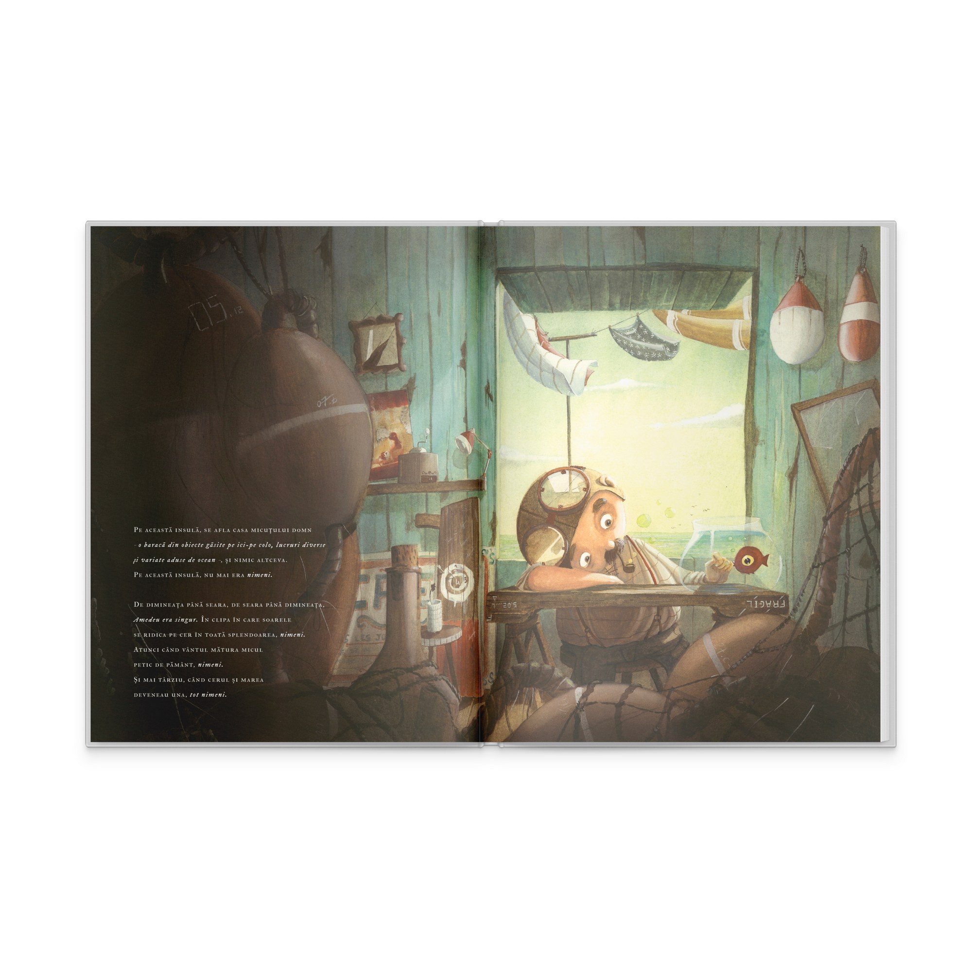 Într-o bună zi, Amedeu observase cum un pește zbura spre cer, rămânând suprins! Astfel, acesta decise să experimenteze, rând pe rând, în voia ciripitului rândunicii, „zborul” spre cer al mai multor obiecte… până a rămas fără ele.