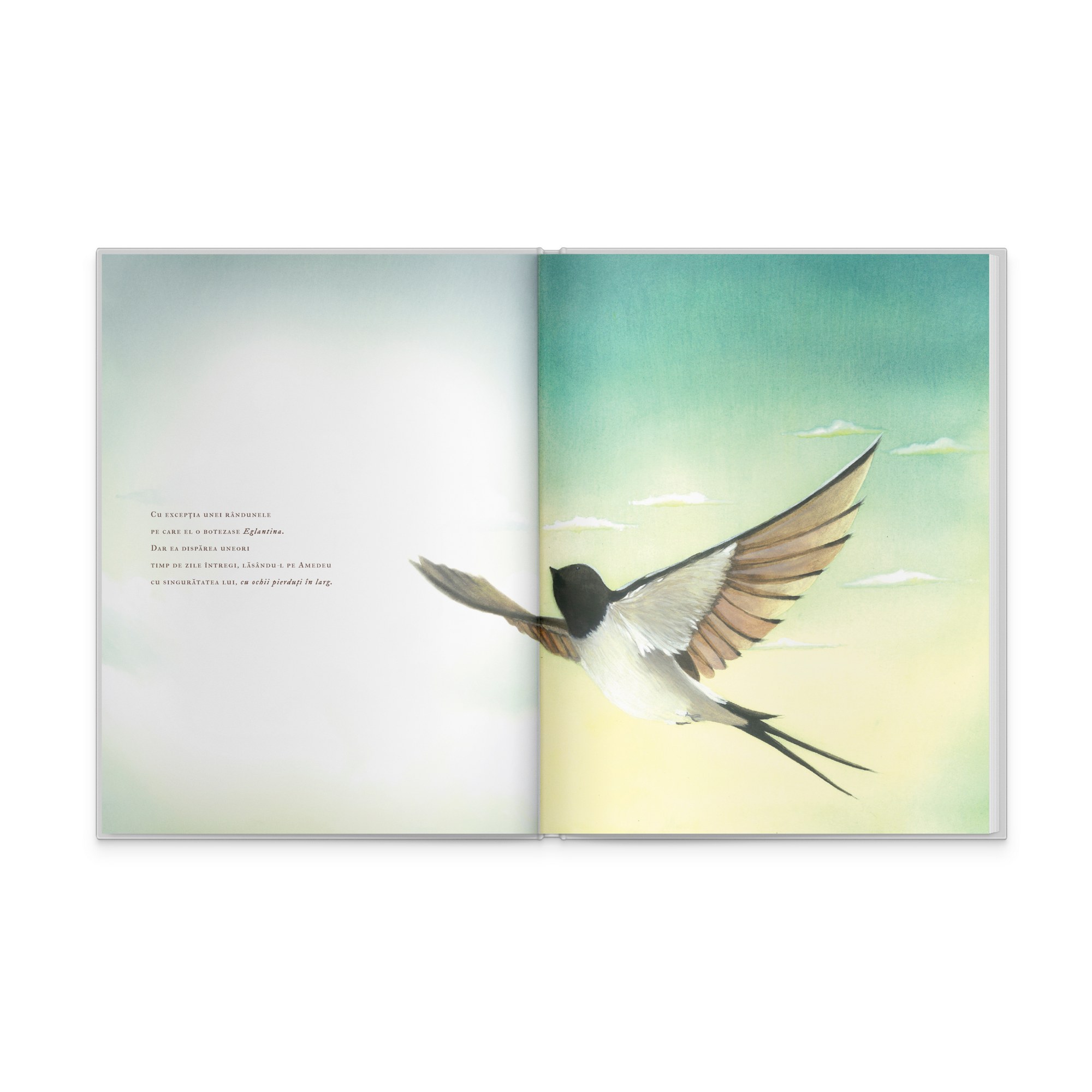 Ambii se bucurau de compania rândicilor Martina și Eglantina… și ambii rămâneau, uneori, zile întregi, fără ele… doar dacă ar fi știut că, de fapt, Martina și Eglantina erau una și aceeași rândunică… când aici, când acolo, încercând să dirijeze, prin al ei cântec și zbor, legătura înălțătoare dintre cei doi singuratici…