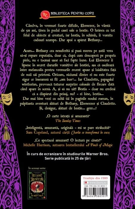 Dar mai bine vezi cu ochii tăi în paginile noului roman, în palpitanta aventură alături de Bethany, Ebeneezer și Claudette. Și, desigur, alături de bestie... grrr...!