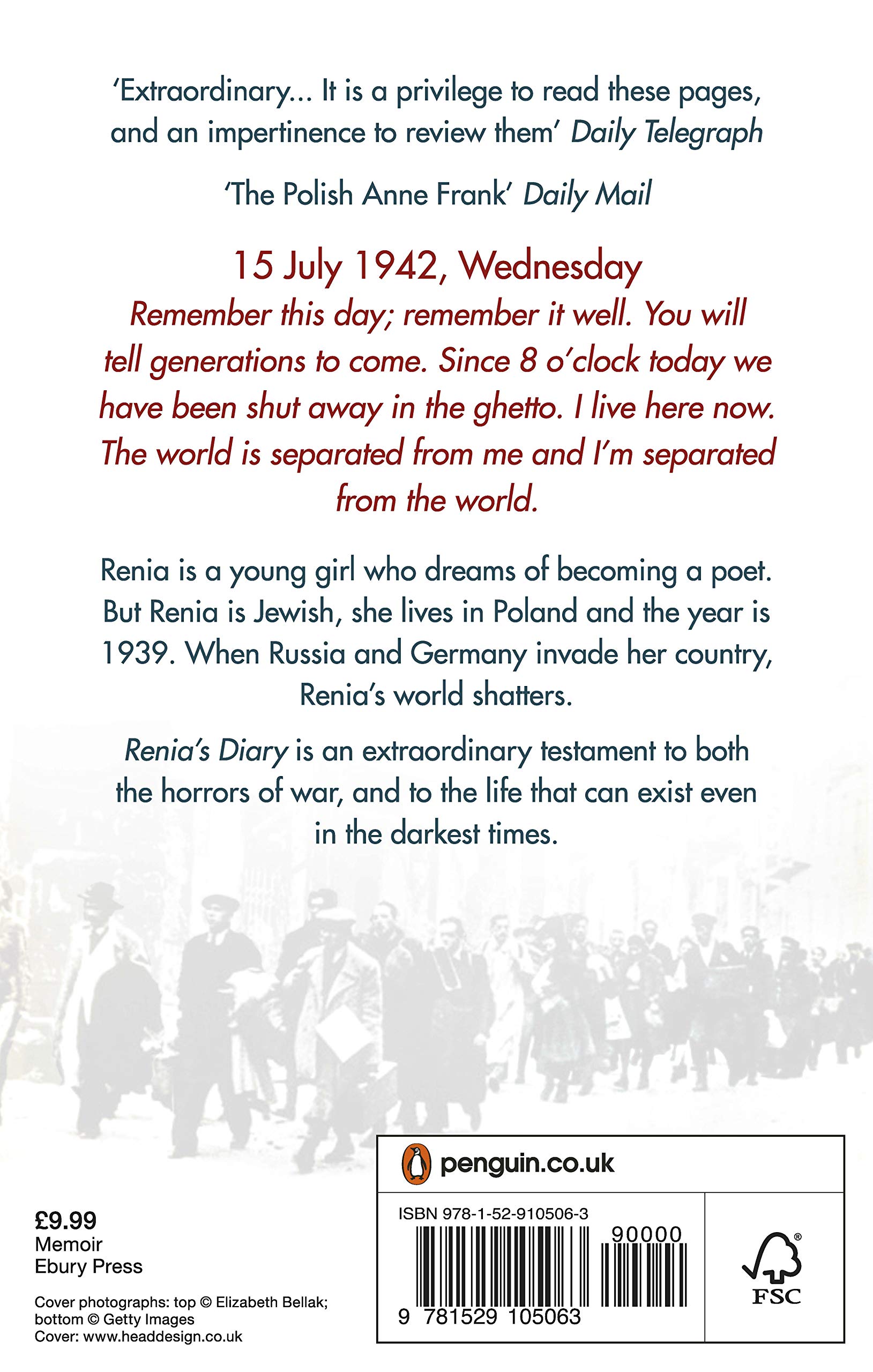 Renia is a young girl who dreams of becoming a poet. But Renia is Jewish, she lives in Poland and the year is 1939. When Russia and Germany invade her country, Renia's world shatters. Separated from her mother, her life takes on a new urgency as she flees Przemysl to escape night bombing raids, observes the disappearances of other Jewish families and, finally, witnesses the creation of the ghetto.