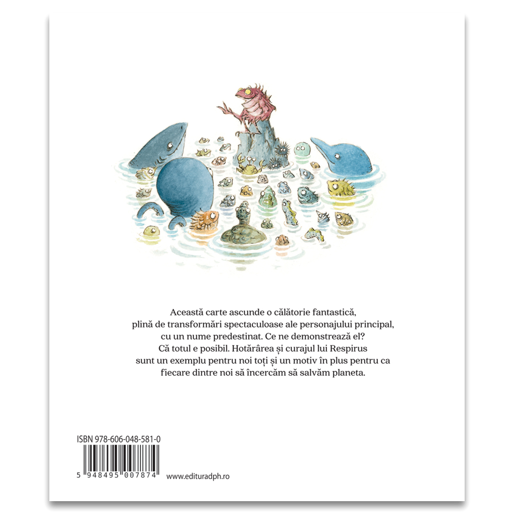 Această carte ascunde o călătorie fantastică, plină de transformări spectaculoase ale personajului principal, cu un nume predestinat. Respirus, un pește curajos, părăsește fundul mării și se aventurează pe uscat. El caută un loc mai sănătos și mai protejat pentru a trăi.