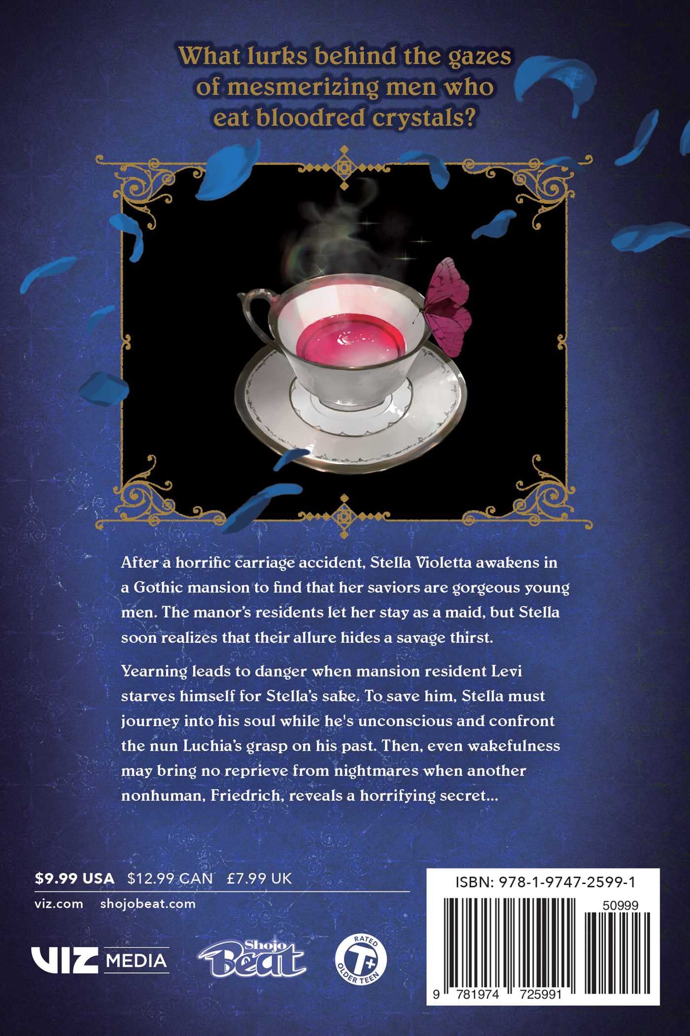 After a horrific carriage accident, Stella Violetta awakens in a Gothic mansion to find that her saviors are gorgeous young men. The manor’s residents let her stay as a maid, but Stella soon realizes that their allure hides a savage thirst.