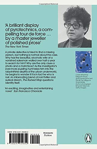 A private detective is hired to find a missing person, but nothing is normal about this case. Why has the beautiful, alcoholic wife of the vanished salesman waited over half a year to search for him? Why are the only clues a photo and a matchbox? As the investigator's ever-more puzzling hunt takes him into the labyrinthine depths of the urban underworld, he begins to wonder if it is in fact he who is lost. An intoxicating blend of noir thriller and surreal dream, The Ruined Map questions identity itself.