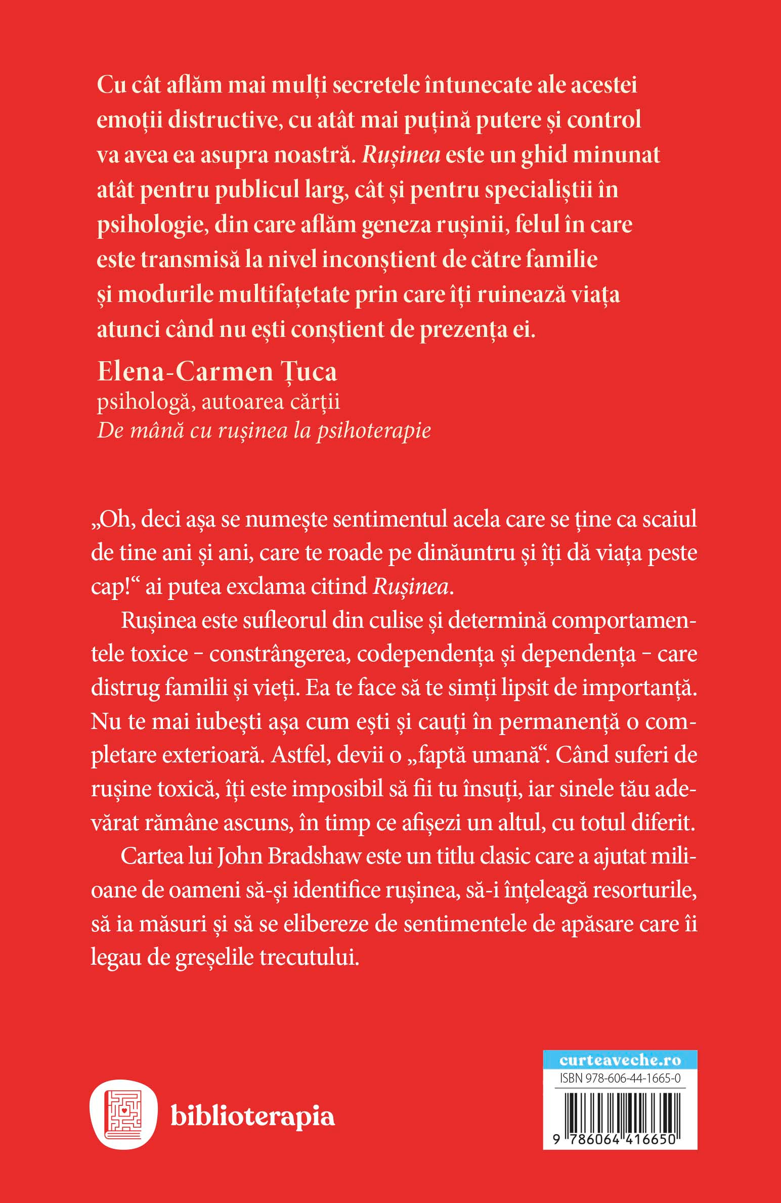 Cartea lui John Bradshaw este un titlu clasic care a ajutat milioane de oameni să-și identifice rușinea, să-i înțeleagă resorturile, să ia măsuri și să se elibereze de sentimentele de apăsare care îi legau de greșelile trecutului.