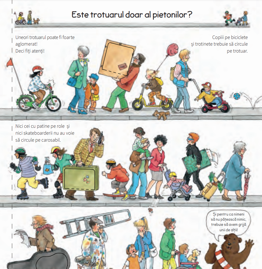 Această carte îi invită pe copii să se familiarizeze cu cele mai importante elemente de educație rutieră, cu ajutorul imaginilor și fersetrelor atractive.