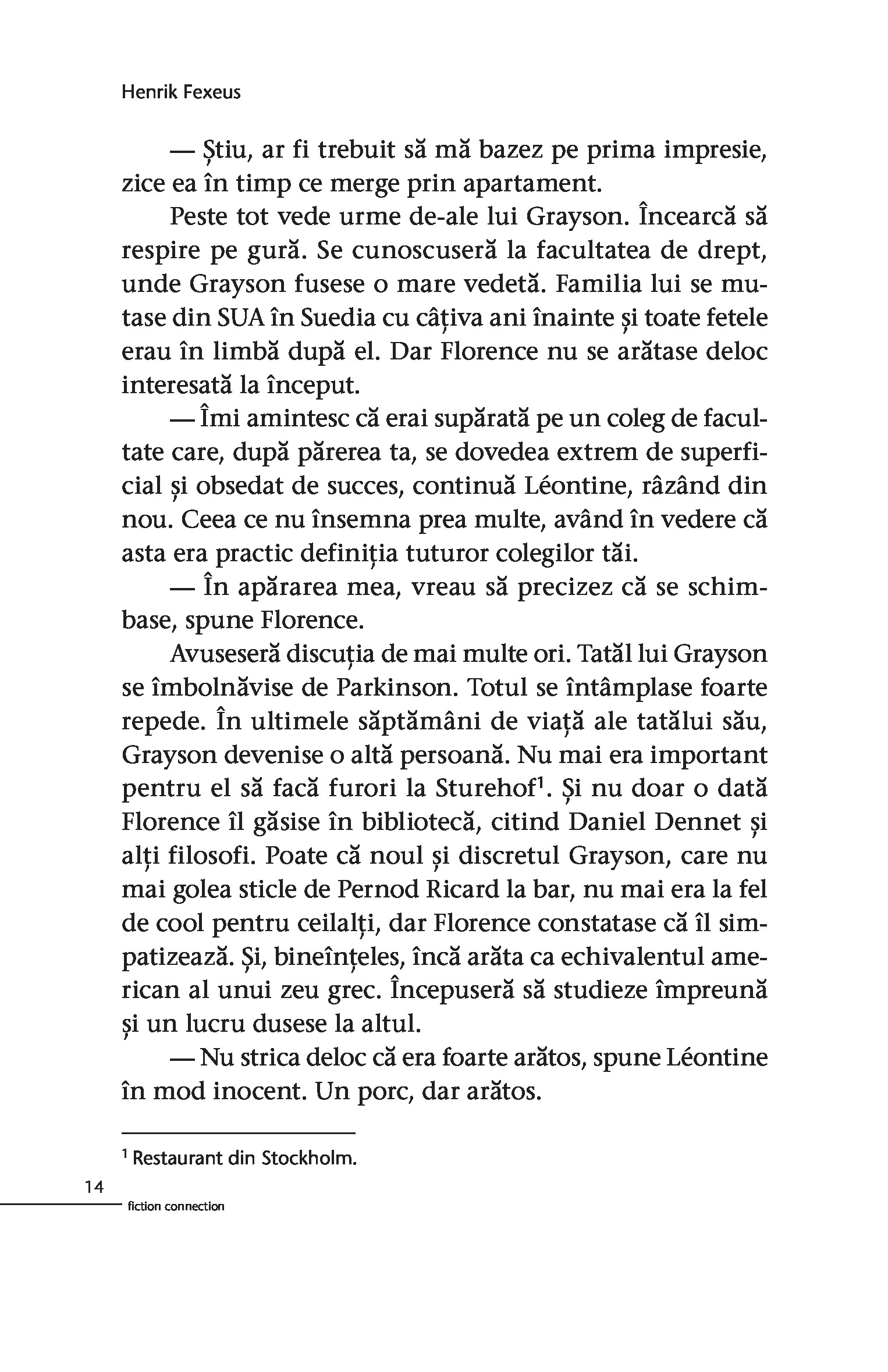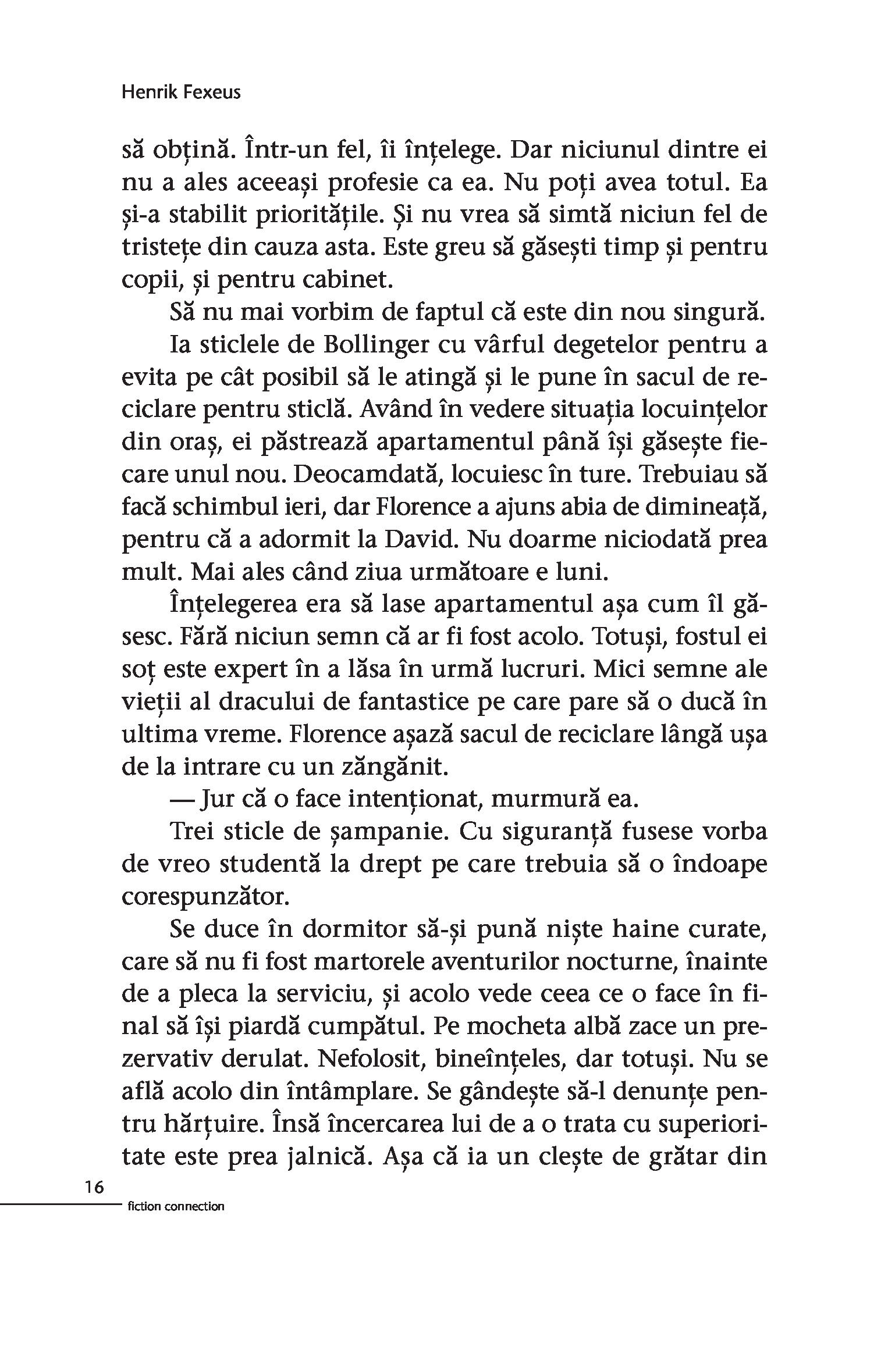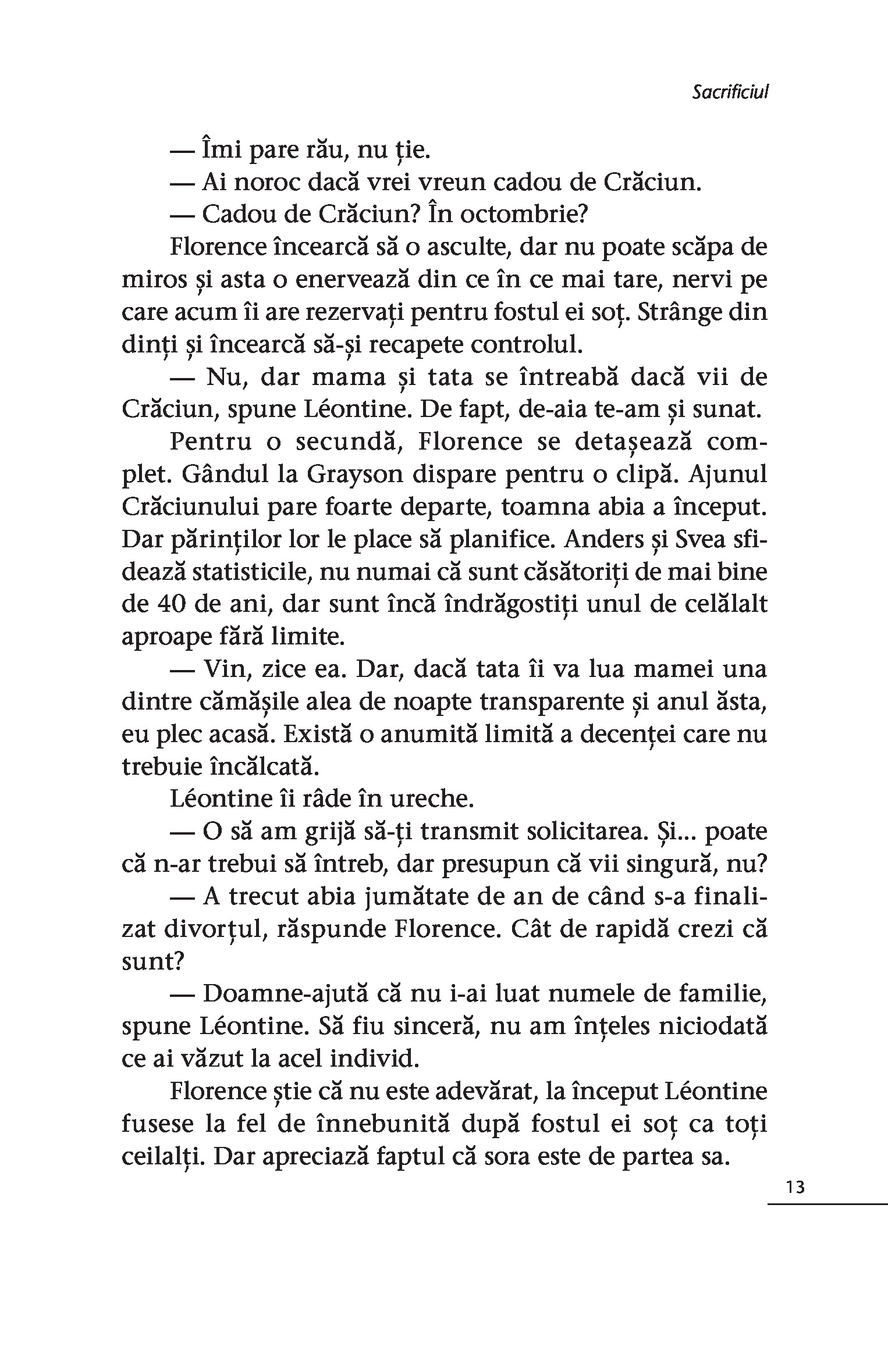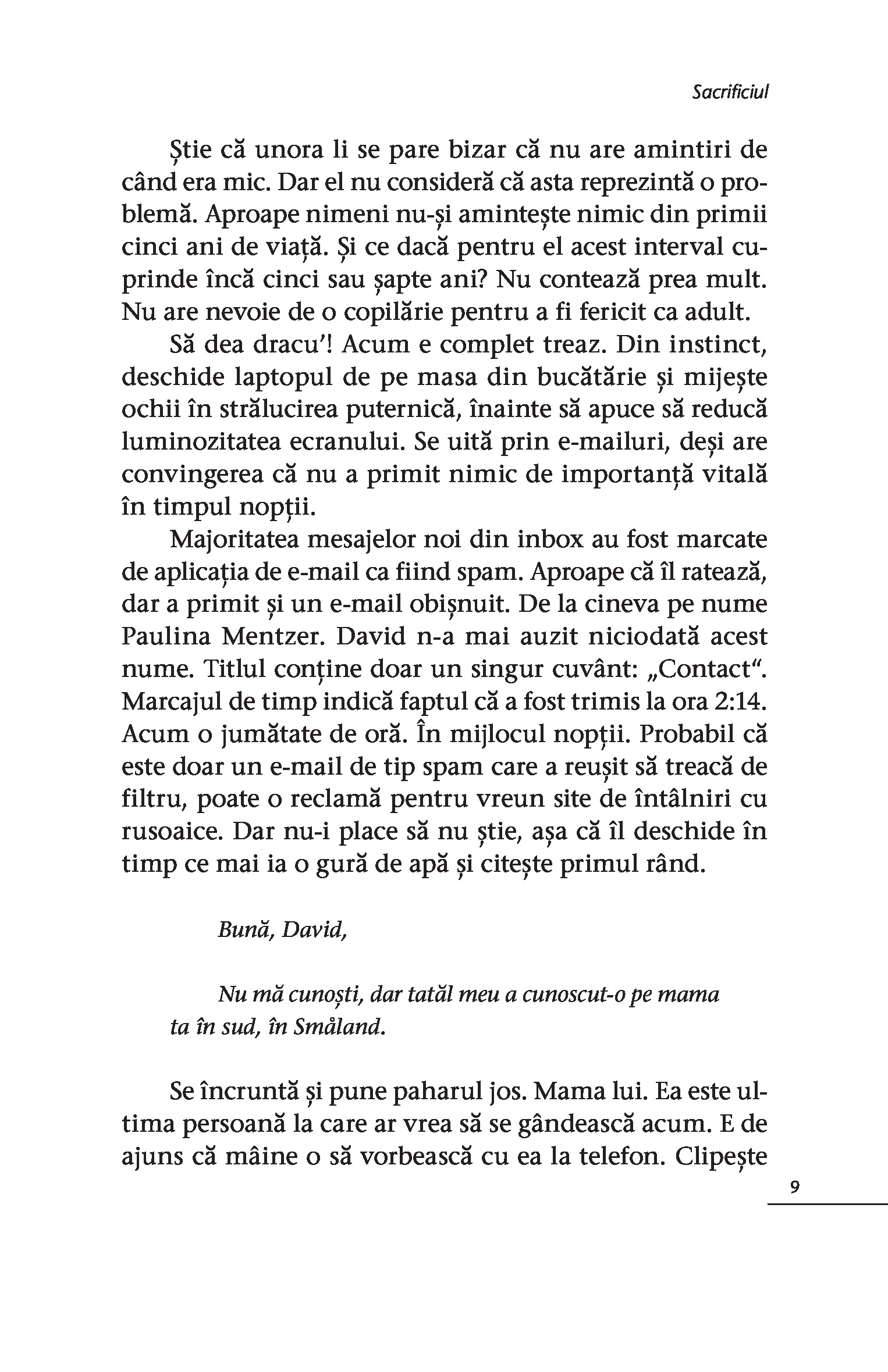 Sunt incredibil de mândru de această carte. Mă reprezintă foarte mult, dar sper că va fi și o surpriză. A fost nevoie de doi ani să scriu Sacrificiul, iar acum abia aștept ca oamenii să pătrundă în lumea lui Florence și David. - HENRIK FEXEUS