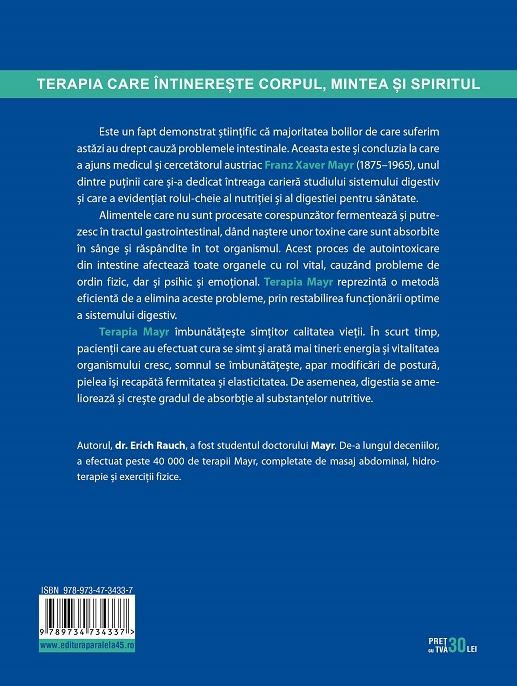 Autorul, dr. Erich Rauch, a fost studentul doctorului Mayr. De-a lungul deceniilor, a efectuat peste 40 000 de terapii Mayr, completate de masaj abdominal, hidroterapie şi exerciții fizice.