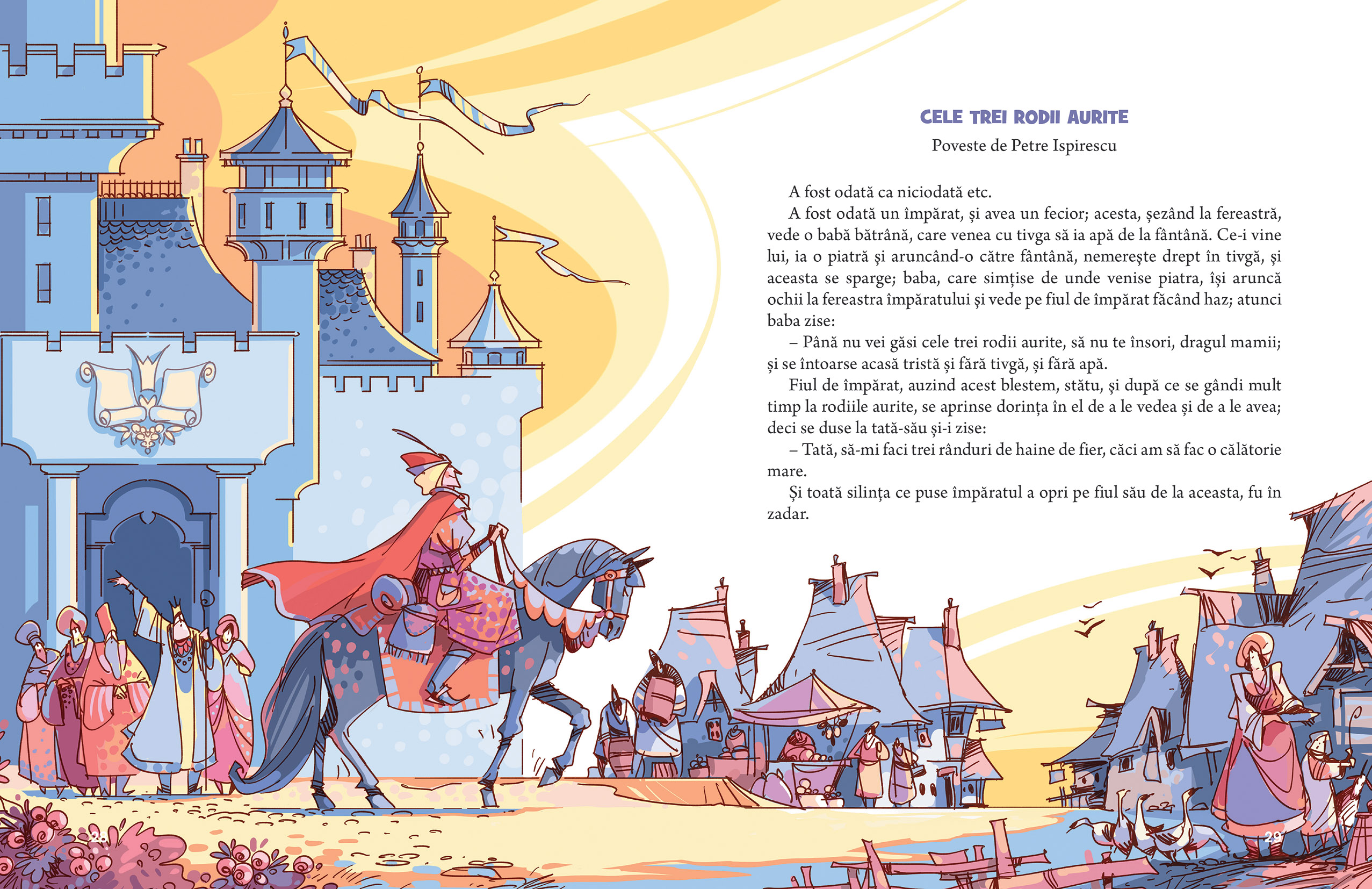 "În această carte vei găsi cele mai frumoase povești scrise sau culese de marii noștri clasici: Mihai Eminescu, Ioan Slavici, Ion Creangă, de vestitul culegător de basme populare românești Petre Ispirescu. Lectura lor va însemna pentru tine o palpitantă aventură în lumea miraculosului, unde vei întâlni împărați chibzuiți la minte (și nu prea!), prințese frumoase ca rupte din soare și prinți îndrăzneți, călărind armăsari focoși și