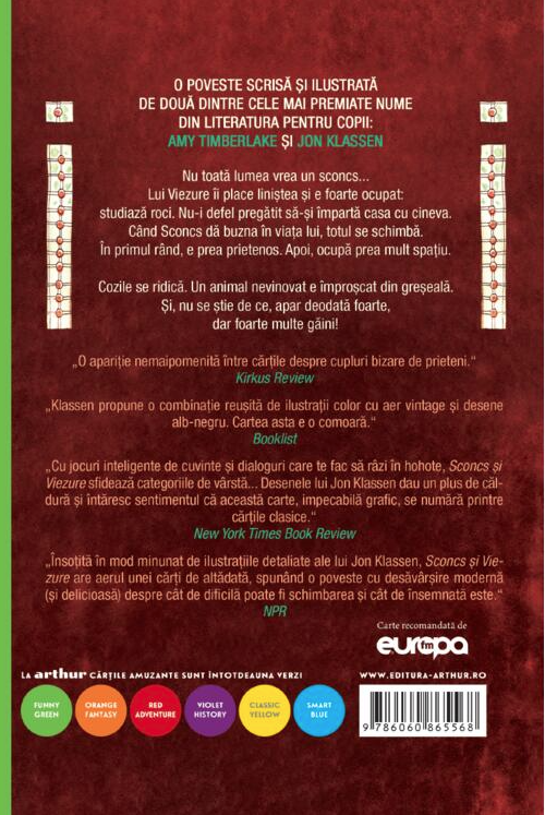 Nu toată lumea vrea un sconcs... Lui Viezure îi place liniștea și e foarte ocupat: studiază roci. Nu-i de fel pregătit să-și împartă casa cu cineva. Când sconcs dă buzna în viața lui, totul de schimbă. În primul rând, e prea prietenos. Apoi ocupă prea mult spațiu.
