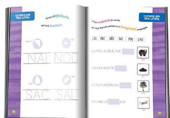 Copilul va avea de scris si de citit, progresiv, cuvinte de trei, patru si cinci litere.