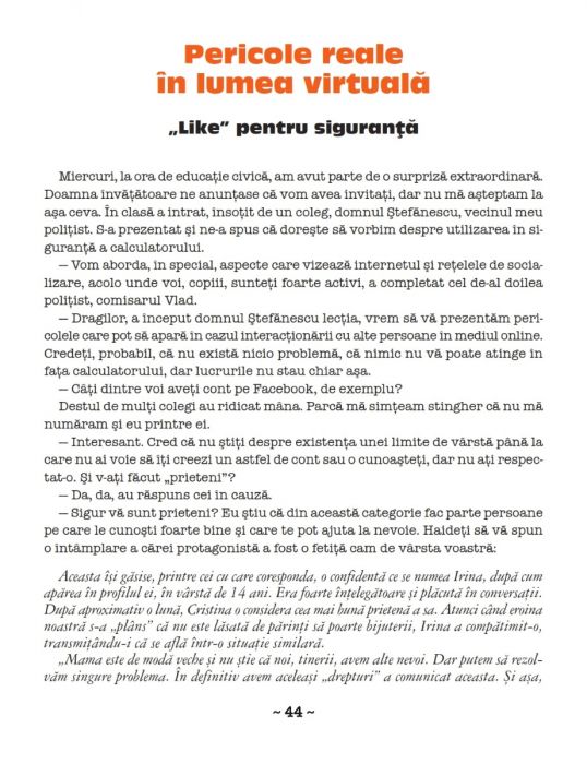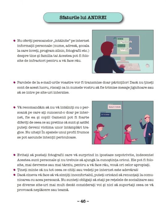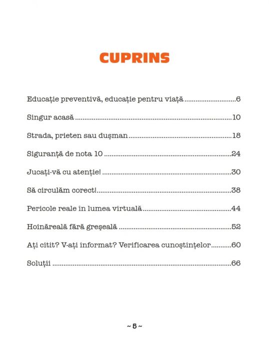 Povestirile, recomandările cu caracter preventiv, jocurile tematice și testele de evaluare vor contribui la însușirea unor măsuri de autoprotecție adecvate.