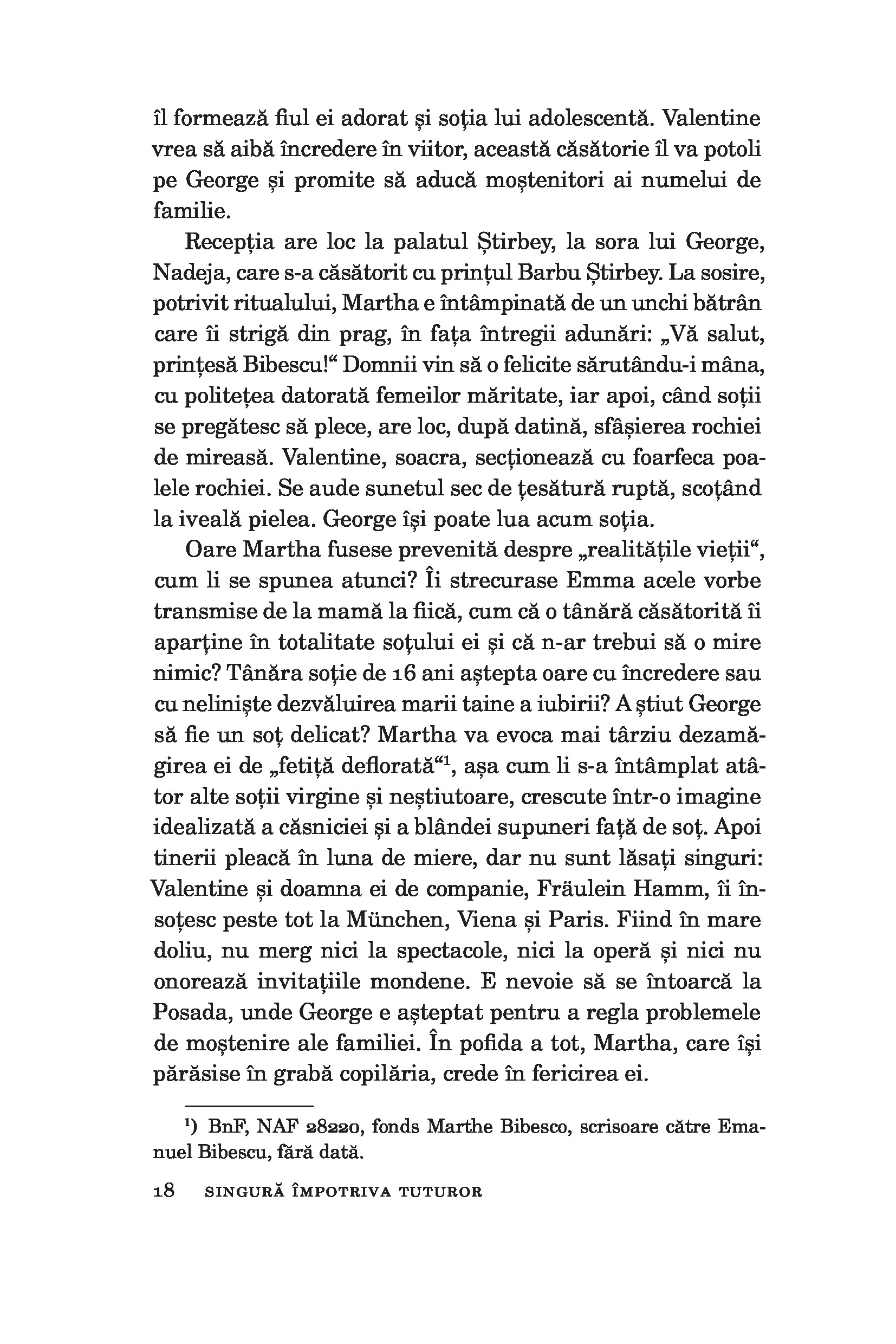Martha Bibescu a trăit totul: tragediile veacului său, dramele și trădările, faima, luxul exorbitant și exilul în sărăcie după 1945. Timp de unsprezece ani, a fost despărțită de singura ei fiică, prizonieră în România comunistă. Nu s-a dat bătută niciodată.