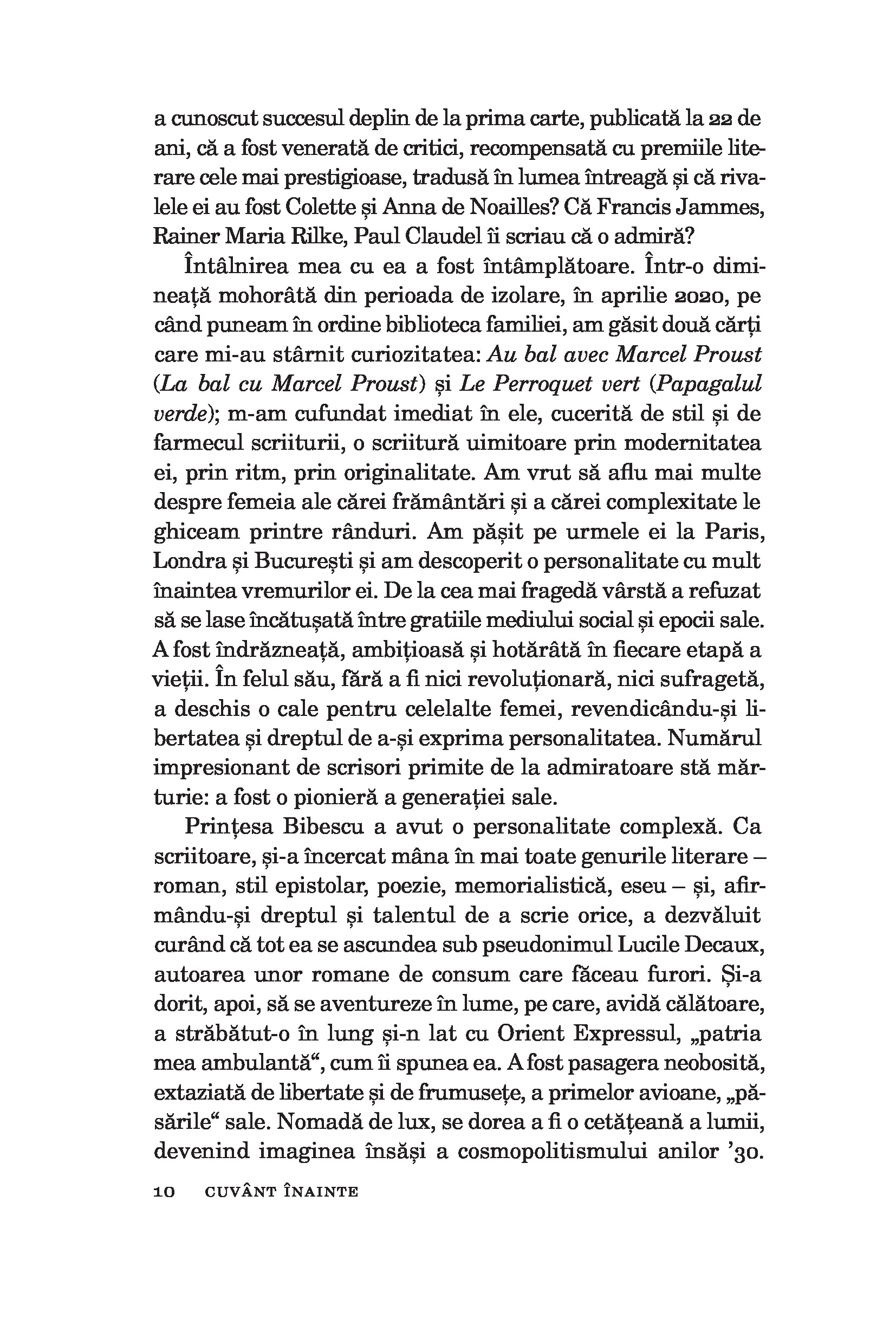 Prințesa Bibescu a fost un personaj flamboaiant, imaginea însăși a universului Belle Époque – și mult mai mult de atât. A traversat secolul XX marcându-i profund pe toți cei cu care s-a intersectat, seducându-i sau exasperându-i cu stilul ei original. A fost acuzată de colaborare cu inamicul și, în alte împrejurări, s-a bucurat de gratitudinea contemporanilor. Scriitoare de succes, rivalizând în epocă cu Anna de Noailles și Colette, s-a bucurat de admirația lui Proust, Rilke sau Paul Claudel. Se considera cetățean al lumii, călătoare, exploratoare. Seducătoare fără pereche, și-a căutat iubirea cu pasiune, fiind mereu dezamăgită. Spirit diplomatic, a acționat din umbră și i-a sprijinit pe cei care au scris istoria, uneltind cu grație și asumându-și riscuri pentru a apăra interesele țării sale și pacea în Europa.