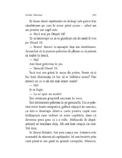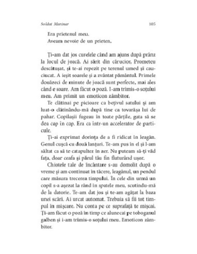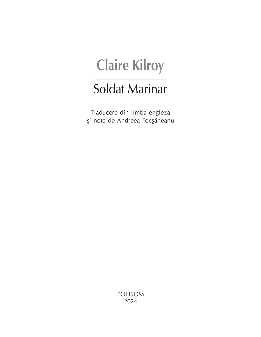 Puternic şi tensionat ca un thriller despre perioada de început a maternităţii, cu provocările ei asupra sănătăţii mintale a mamei, Soldat Marinar este primul roman publicat de Claire Kilroy după mai bine de un deceniu. Viscerale, turbulente, vitale, emoţiile proaspetei mame ne sunt dezvăluite pe măsură ce căsnicia ei trece prin momente de criză şi un vechi prieten reapare în viaţa ei, oferindu-i un colac de salvare femeii care fusese odată.