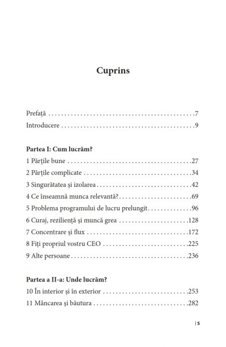 În această carte, Rebecca Seal aduce în discuție ceea ce avem de câștigat, dar și ceea ce ratăm atunci când trecem de la un me¬diu de lucru specific unui birou dintr-o companie, la izolarea și singurătatea din casele noastre. Autoarea îmbină informațiile preluate din cele mai recente studii de psihologie, economie și științe sociale cu datele personale, obținute în urma a zeci de ani de experiență ca freelancer, arătându-ne cum să ne păstrăm reziliența, productivitatea și concentrarea într-o firmă care cel mai adesea are un singur angajat.