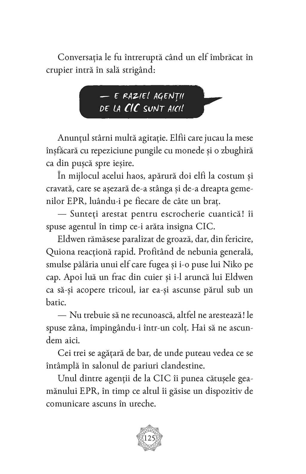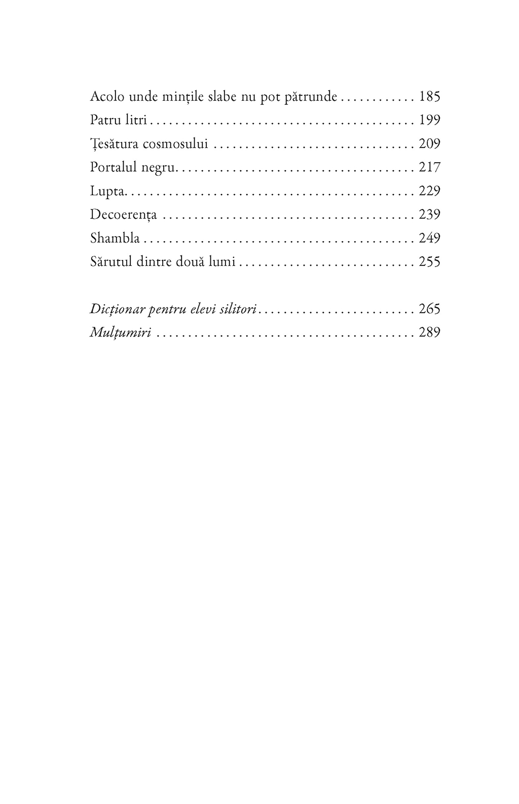 Ușa cu trei încuietori, portalul spre lumea cuantică unde curajosul Niko a trecut prin peripeţii de neuitat, a dispărut. Băiatul nu se mai poate întîlni cu prietenii lui. Asta pînă ce Quiona, zîna cuantică, se întoarce să-i ceară ajutorul. Niko va descoperi că legile fizicii au luat-o razna și numai el și prietenii lui pot să restabilească echilibrul. În noua sa aventură cuantică va trebui să se supună probelor celor patru forţe care guvernează universul nostru.