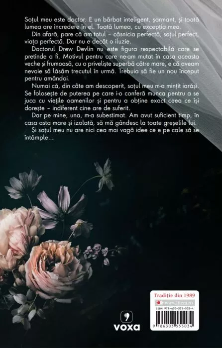 Doctorul Drew Devlin nu este figura respectabilă care se pretinde a fi. Motivul pentru care ne-am mutat în casa aceasta veche și frumoasă, cu o priveliște superbă către mare, e că aveam nevoie să lăsăm trecutul în urmă. Trebuia să fie un nou început pentru amândoi.