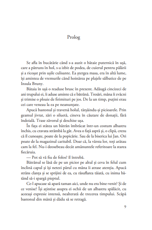 Unde să fugi când trecutul pe care îl credeai uitat te prinde din urmă? Unde să-ți afli refugiul în fața unui prezent copleșitor? Mary Manson, soția paznicului de far, și fiul ei Tom caută răspunsuri, fiecare în felul său. Și le găsesc la capătul lumii: pe mica insulă Bruny din sudul Tasmaniei și în Antarctica. Þinutul măturat de vânturi și întinderea albă a ghețurilor veșnice, pustie și elementară, sunt personaje cu drepturi depline în povestea țesută de Karen Viggers. Citind-o, simți cum te desprinzi de cotidian și respiri alt aer, al unor locuri unde lucrurile și sentimentele capătă altă valoare, unde te poți regăsi, pătrunzând întregul sens al întâmplărilor și al personajelor.