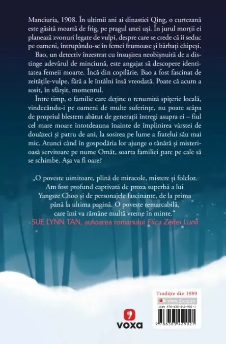 „Un fascinant mystery vulpesc, care merită din plin să vă suspendați neîncrederea... Bogata tradiție asiatică a folclorului legat de vulpi oferă un fundal pentru povestea aceasta complexă și plină de atmosferă despre identitate și descoperire, plasată în Manciuria începutului de secol XX.“ KIRKUS REVIEWS