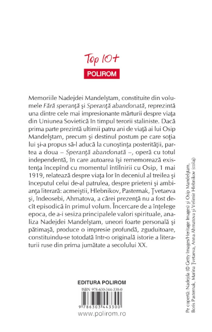 Memoriile Nadejdei Mandelştam, constituite din volumele Fără speranţă şi Speranţă abandonată, reprezintă una dintre cele mai impresionante mărturii despre viaţa din Uniunea Sovietică în timpul terorii staliniste.