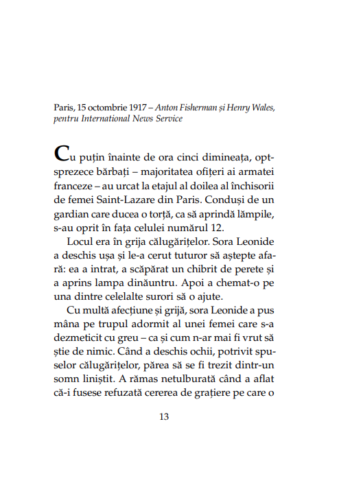 O dansatoare care a șocat și a fermecat publicul. O curtezană care a sfidat rigorile vremii. O spioană – poate cea mai faimoasă – care i-a subjugat pe puternicii zilei. Înalta societate a adulat-o și a detestat-o, ziarele au elogiat-o și au condamnat-o. Sub numele de Mata Hari a devenit un mit, iar arma ei a fost seducția.