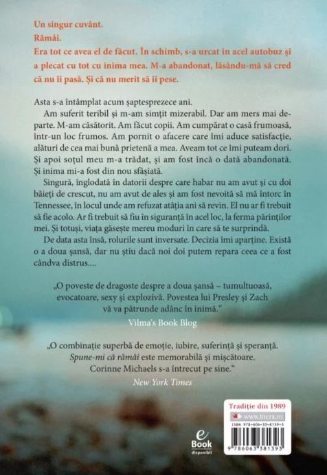 Singură, înglodată în datorii despre care habar nu am avut și cu doi băieți de crescut, nu am avut de ales și am fost nevoită să mă întorc în Tennessee, în locul unde am refuzat atâția ani să revin. El nu ar fi trebuit să fie acolo. Ar fi trebuit să fiu în siguranță în acel loc, la ferma părinților mei. Și totuși, viața găsește mereu moduri în care să te surprindă.