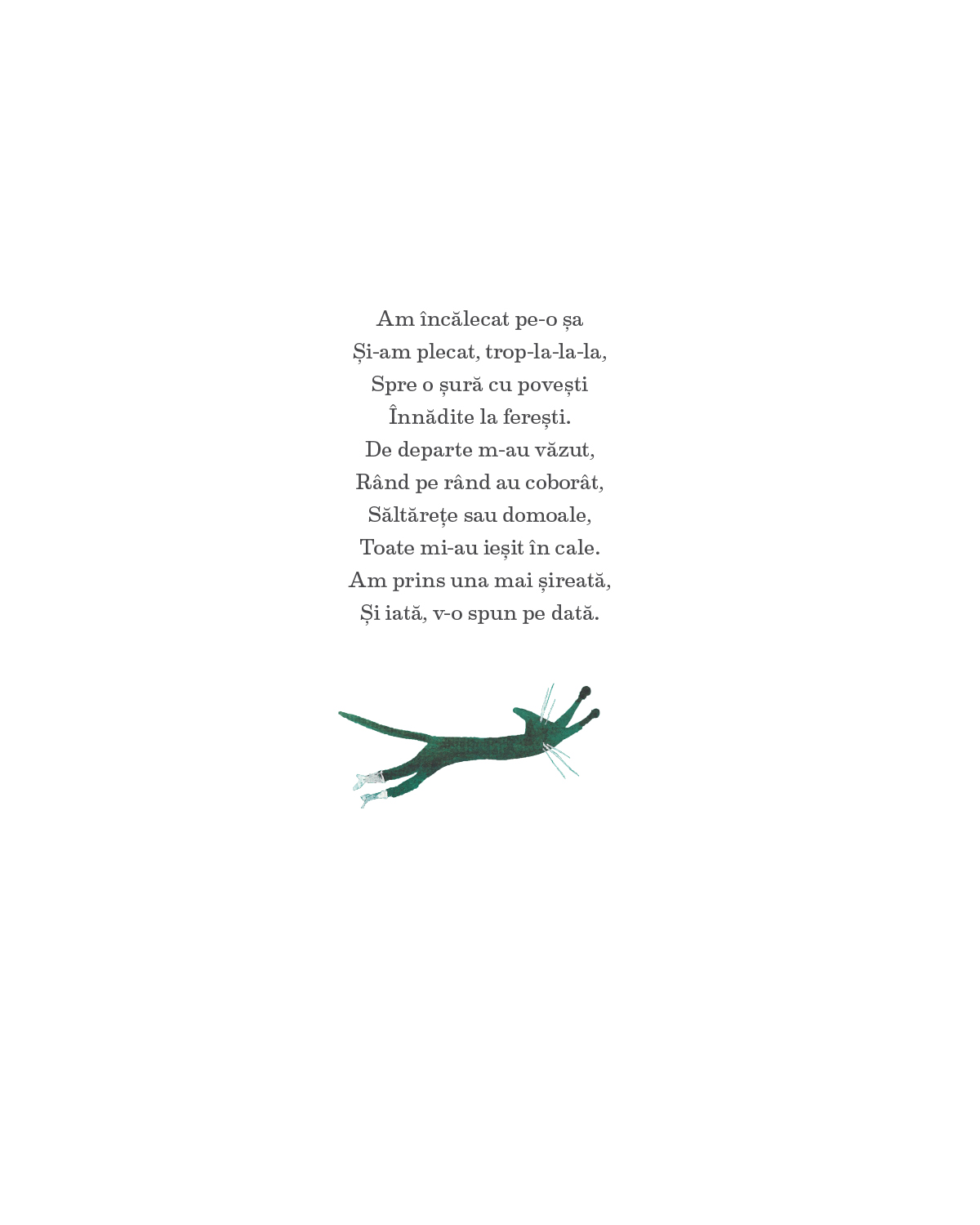 „Spune-mi o poveste cu pisici” este prima carte din colecția de texte clasice pe care o deschide editura noastră. Credem în universalitatea basmelor și avem convingerea că ele se adresează deopotrivă copilului și maturului. Fiecare basm este precedat de un scurt text de întâmpinare, care îi propune cititorului adult o cărare de sens. Cărarea îl va scoate departe, dincolo de înșiruirea de fapte din poveste. Acolo vă dăm întâlnire tuturor, pentru a ne hrăni cu esențele tari ale înțelepciunii tradiționale.